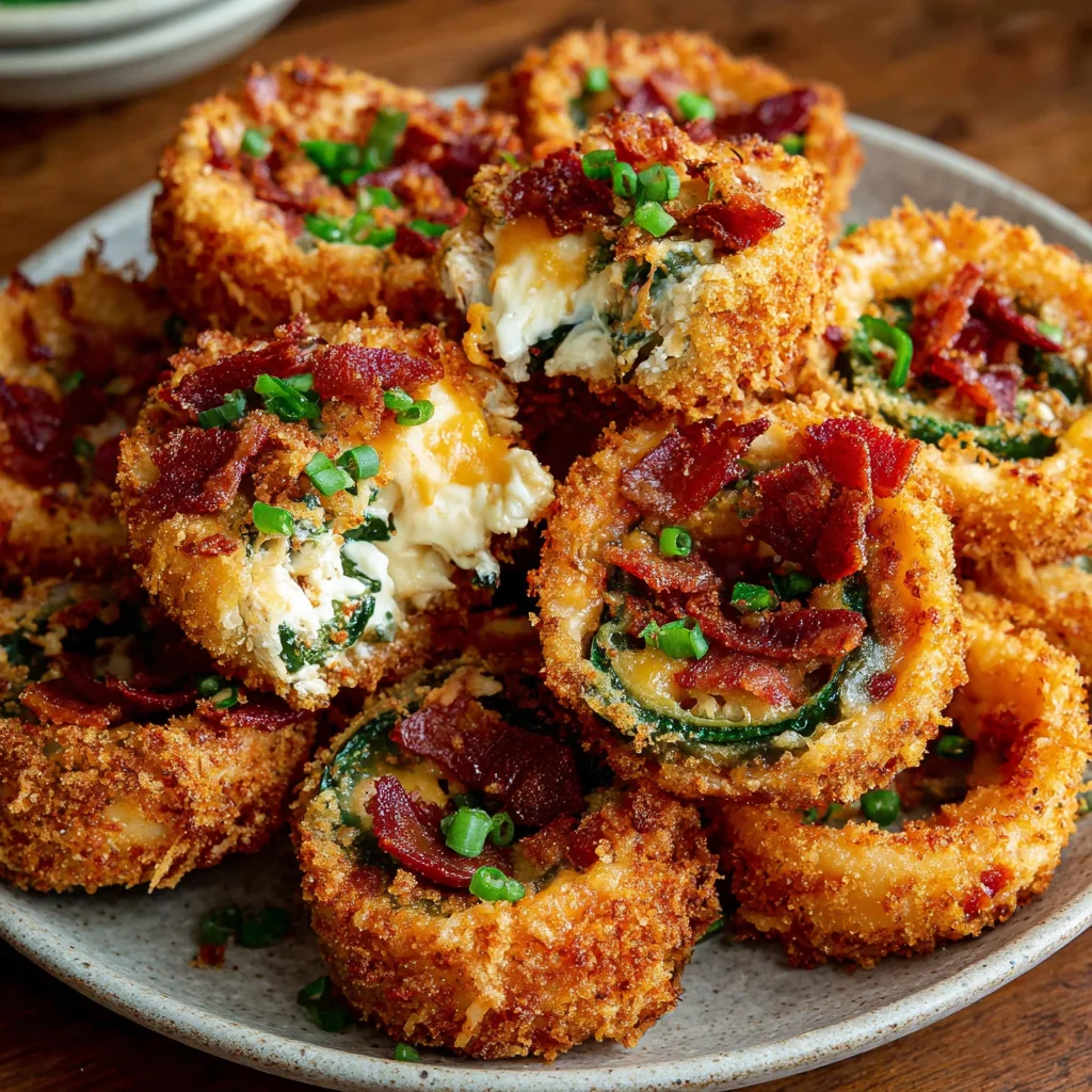Jalapeño Popper Stuffed Onion Rings Recipe – Crispy Fried Appetizer with Cream Cheese & Jalapeños
