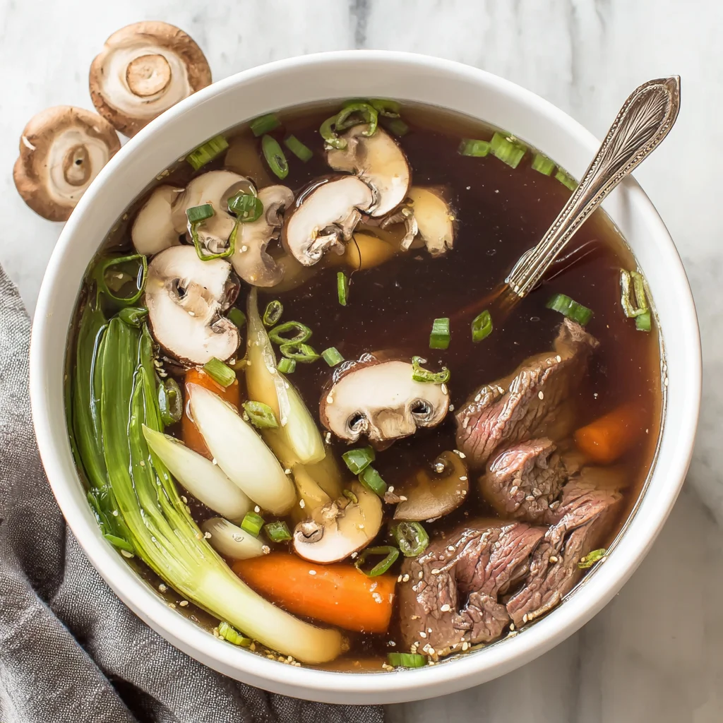 Yes, absolutely! To make it vegetarian or vegan, substitute the chicken and beef broths with a high-quality vegetable broth. Ensure your sesame oil is vegan-friendly and omit any meat-based garnishes. The searing technique for the vegetables remains the same for flavor development.