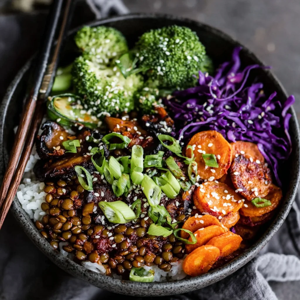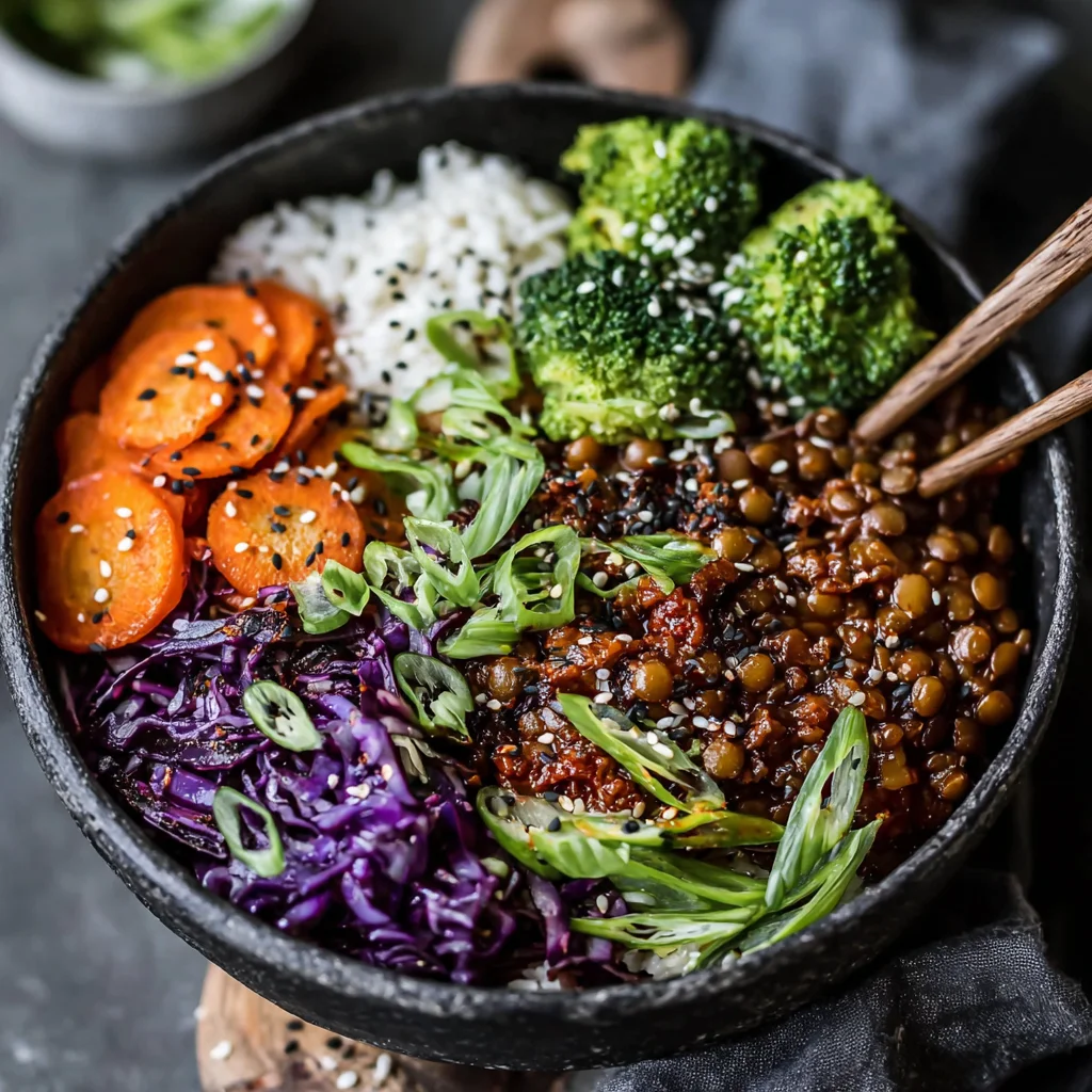 - Generously spoon the warm, flavorful lentil and mushroom bulgogi mixture over fluffy, fragrant cooked basmati rice. Complete the vibrant plating by serving alongside tender steamed broccoli florets, a sprinkle of fresh sliced green onions for a mild oniony bite, a scattering of toasted sesame seeds for added texture and nutty essence, and a side of tangy vegan kimchi to introduce a bright, fermented contrast.