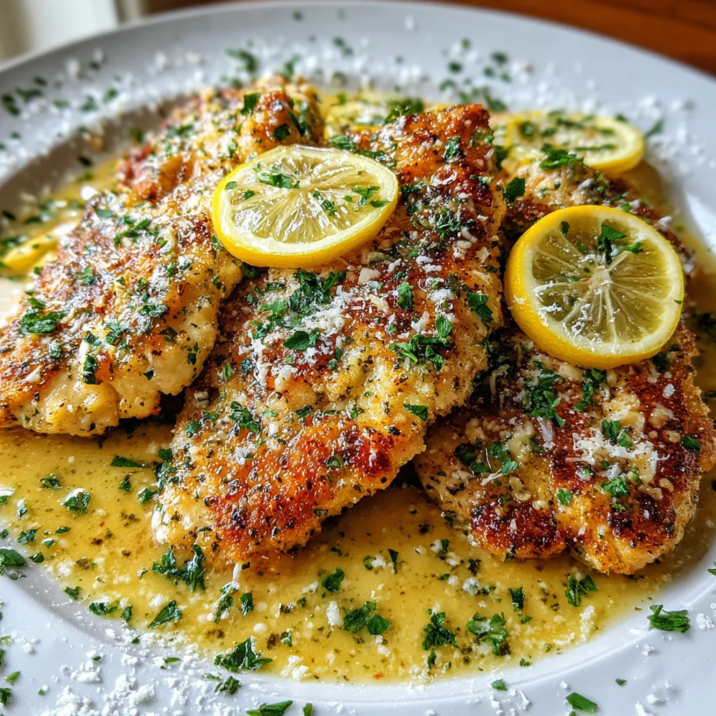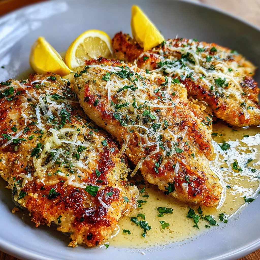 Indulge in the bright, savory flavors of Lemon Chicken Romano, a dish that transforms simple chicken breasts into a gourmet experience. Golden-brown chicken cutlets are simmered in a rich, tangy lemon-Romano sauce, then baked to perfection. It's a comforting yet elegant meal, ideal for a weeknight dinner or a special occasion.