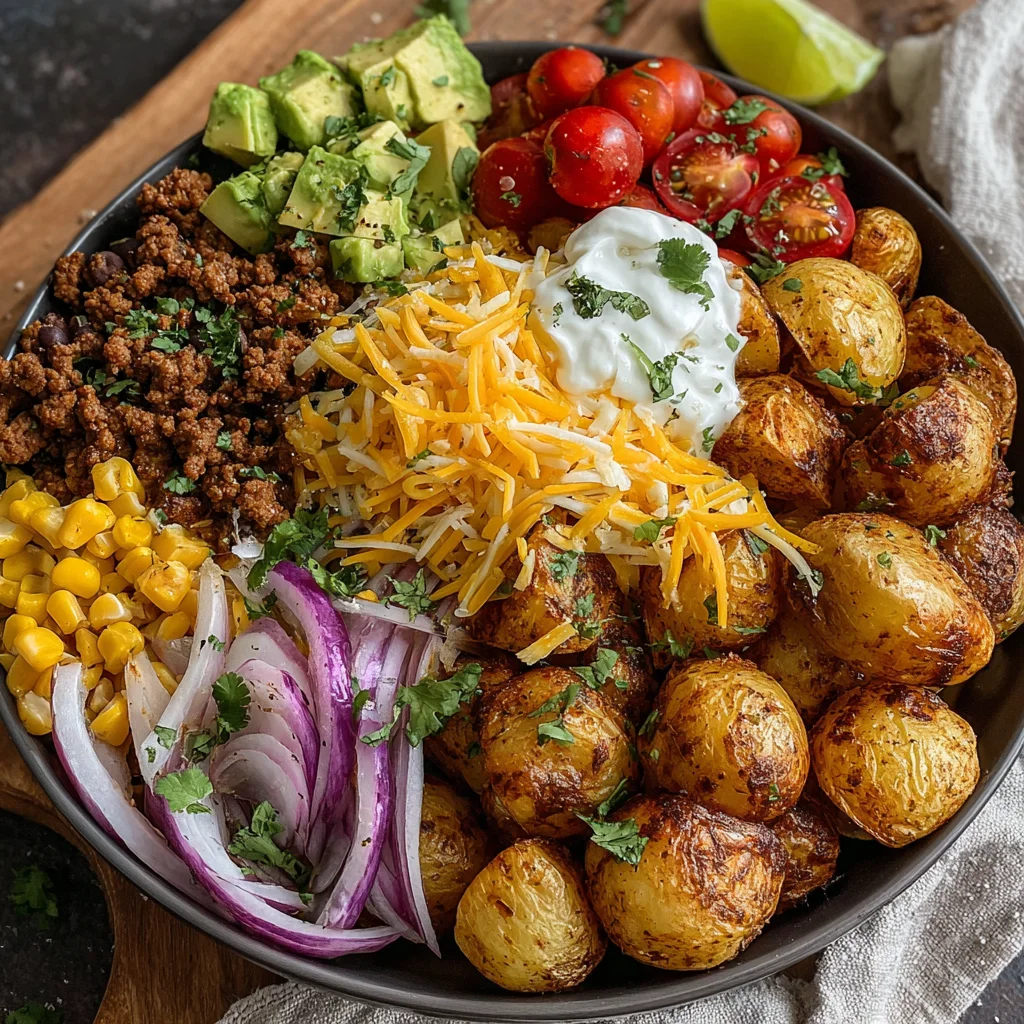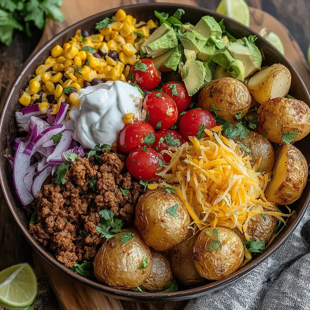 - Serve the loaded potato taco bowls immediately with fresh lime wedges on the side for a squeeze of bright acidity and a dollop of cool sour cream or Greek yogurt for a creamy, tangy finish. Enjoy this vibrant and satisfying meal!