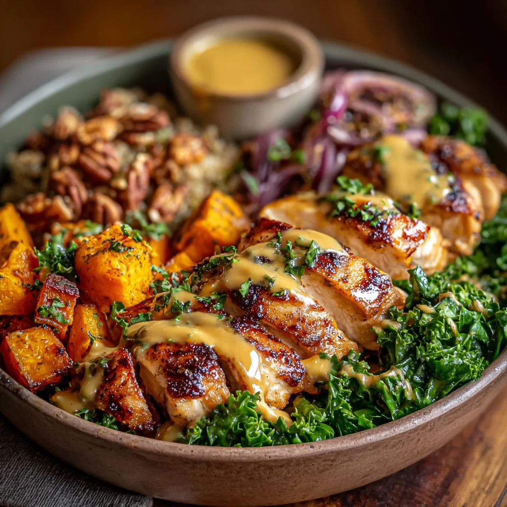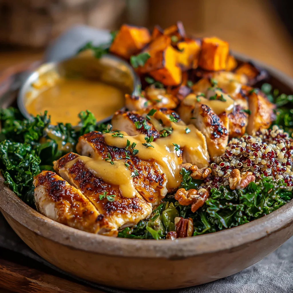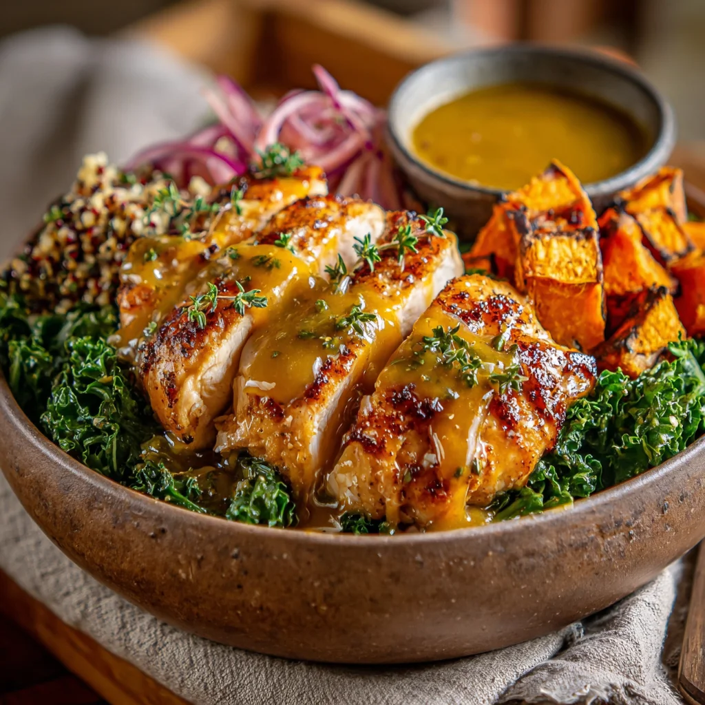 Maple Dijon Chicken & Roasted Sweet Potato Bowls