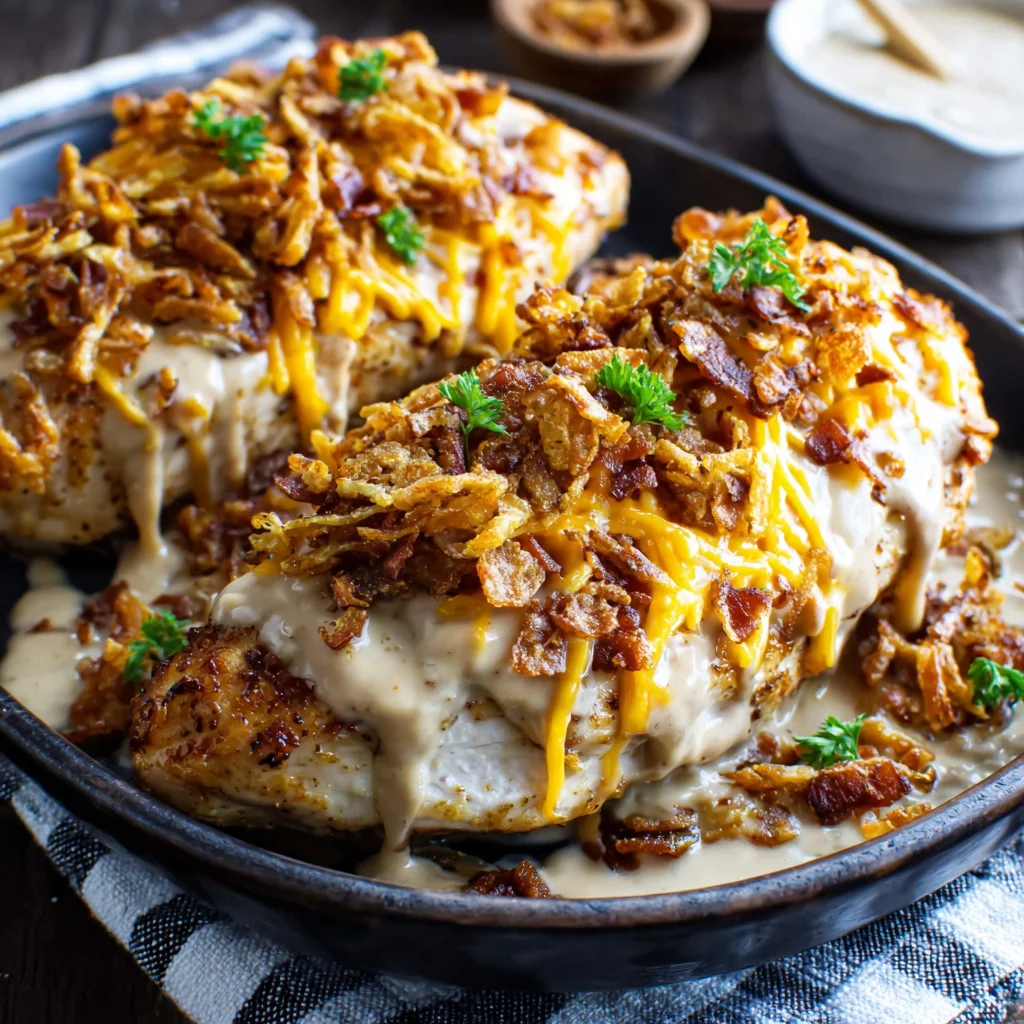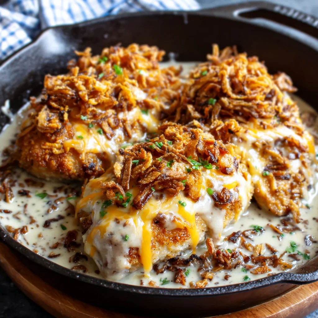 - Carefully remove the baking dish from the oven. Immediately sprinkle the crispy fried onions generously over the melted cheese on each chicken breast. This timing is crucial to ensure the onions remain delightfully crispy and don't become soggy.