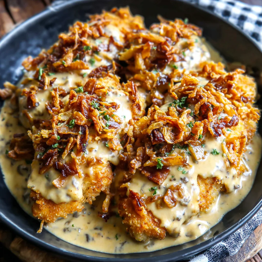 While crispy fried onions are a signature element, you can substitute them. A good alternative is crushed crackers or breadcrumbs tossed in melted butter, sprinkled on top for a similar textural crunch. Alternatively, you can simply omit them.
