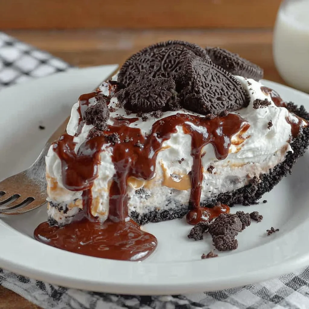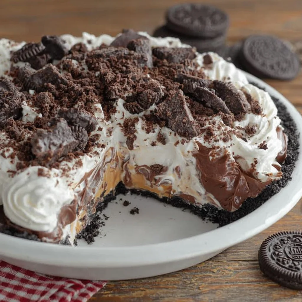 This decadent No-Bake Oreo Peanut Butter Pie is a dream come true for dessert lovers, combining irresistible layers of rich chocolate and creamy peanut butter. Featuring a crunchy Oreo crust, a velvety smooth peanut butter filling, and a luscious chocolate pudding layer, all crowned with whipped topping and delightful garnishes. It's an effortlessly elegant dessert perfect for any occasion, requiring no oven and minimal effort for maximum indulgence.