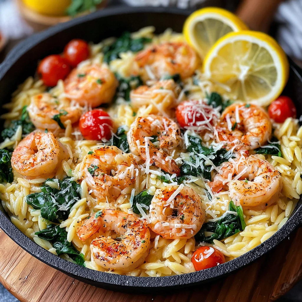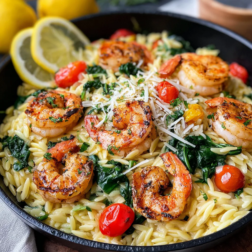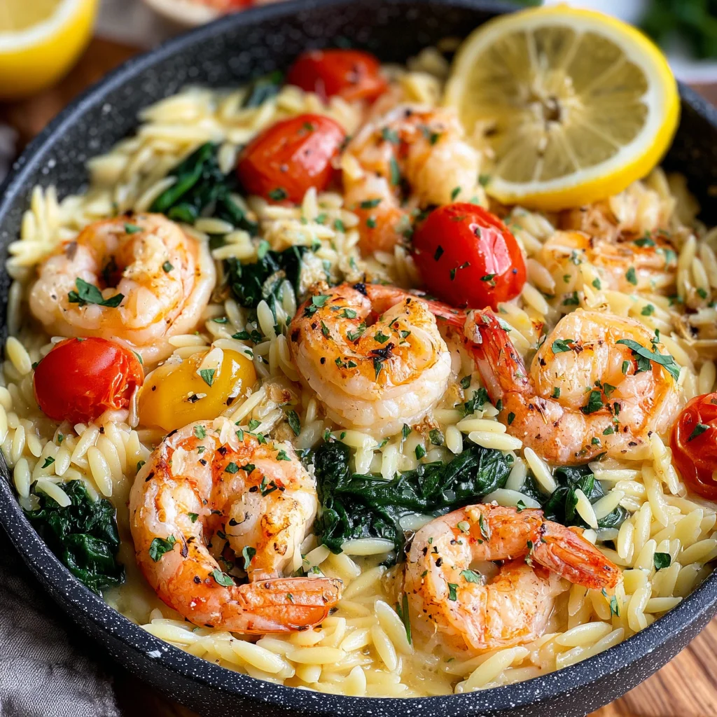 - Nutritionally Balanced: Packed with lean protein from shrimp, complex carbohydrates from orzo, and essential vitamins from spinach and tomatoes.