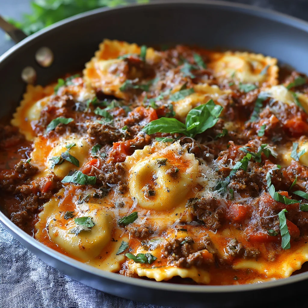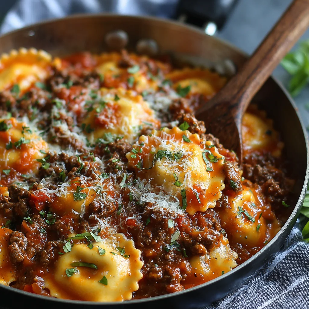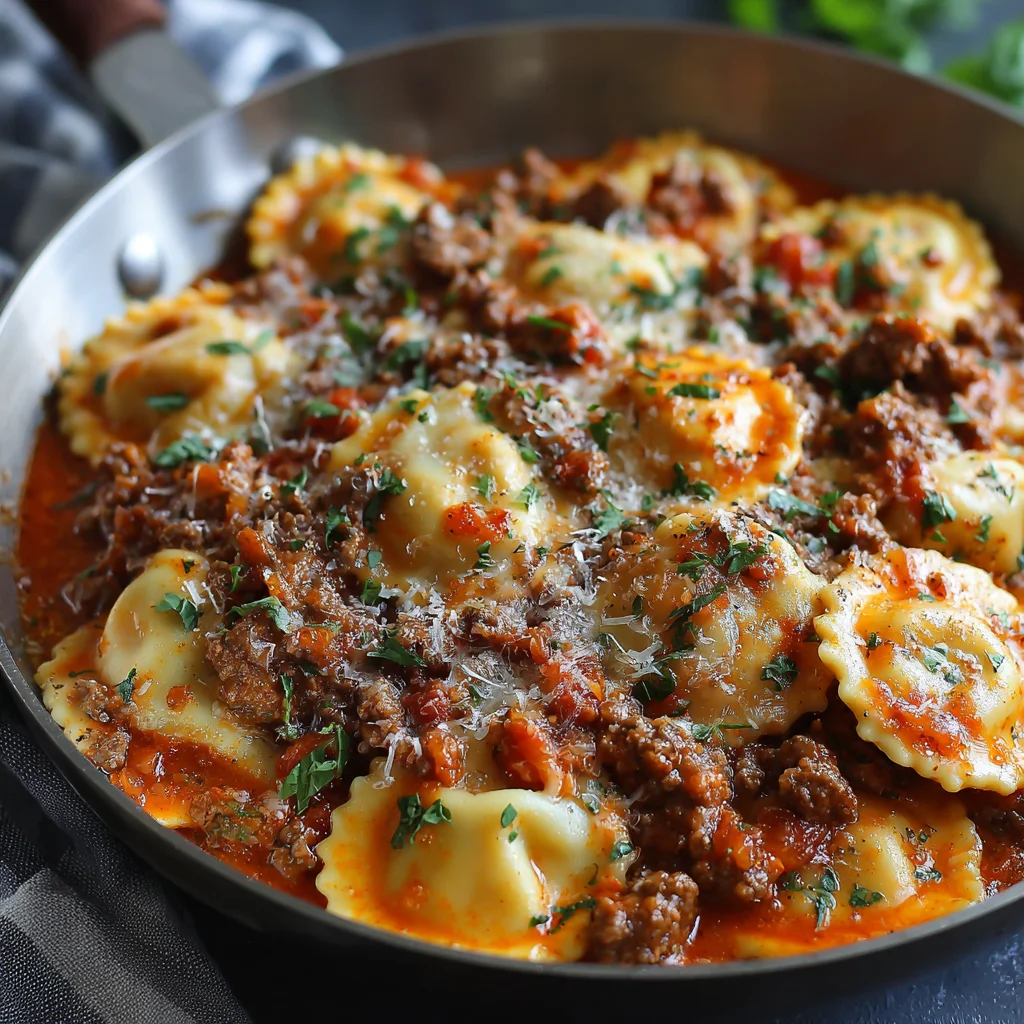 Indulge in the ultimate weeknight comfort with this incredibly satisfying one-pot ravioli dish. Tender cheese ravioli are simmered directly in a rich, savory tomato beef sauce, infused with aromatic herbs and finished with a luxurious swirl of heavy cream and Parmesan. It's a hearty, flavorful meal that comes together with minimal fuss and leaves you with only one pot to clean.