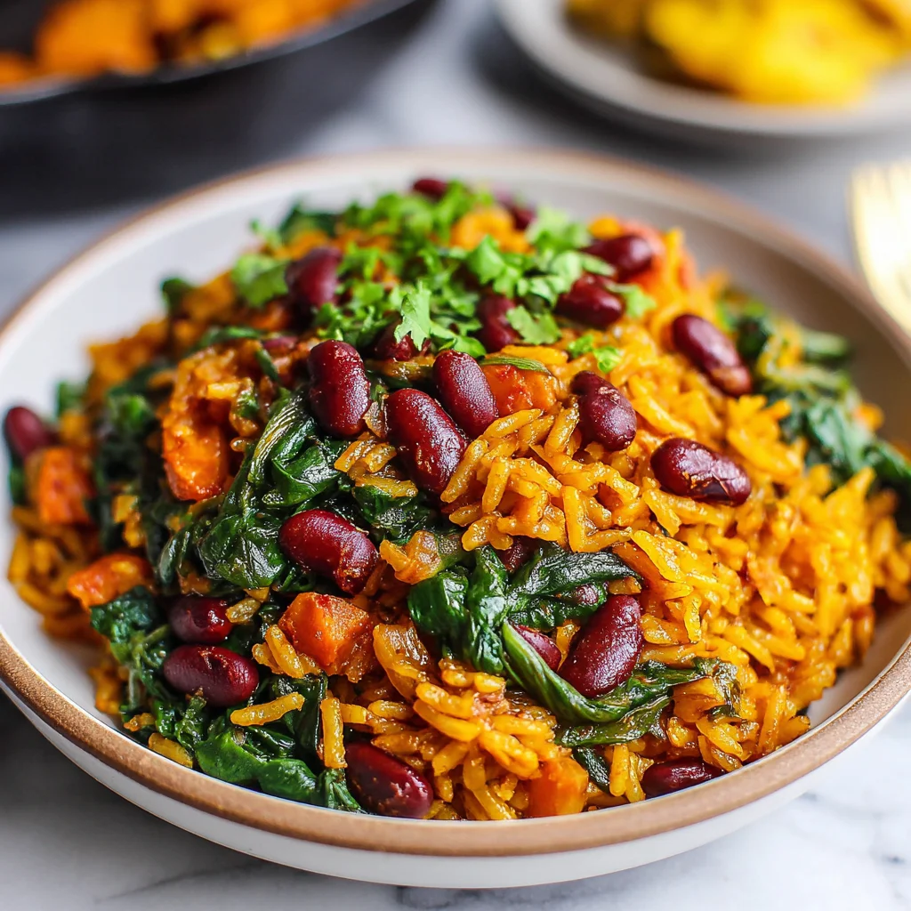- Once the spinach is wilted and tender, remove the lid and give the entire dish a final, gentle stir to fully combine all the flavors and ingredients. Serve the One Pot Vegan Caribbean Pelau hot, optionally garnished with fresh cilantro, chopped scallions, or slices of ripe avocado for added freshness and healthy fats.