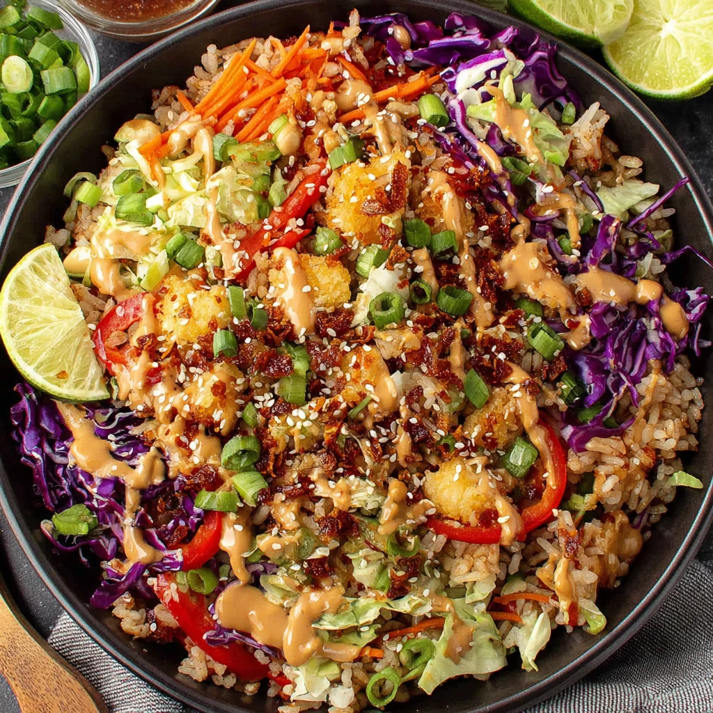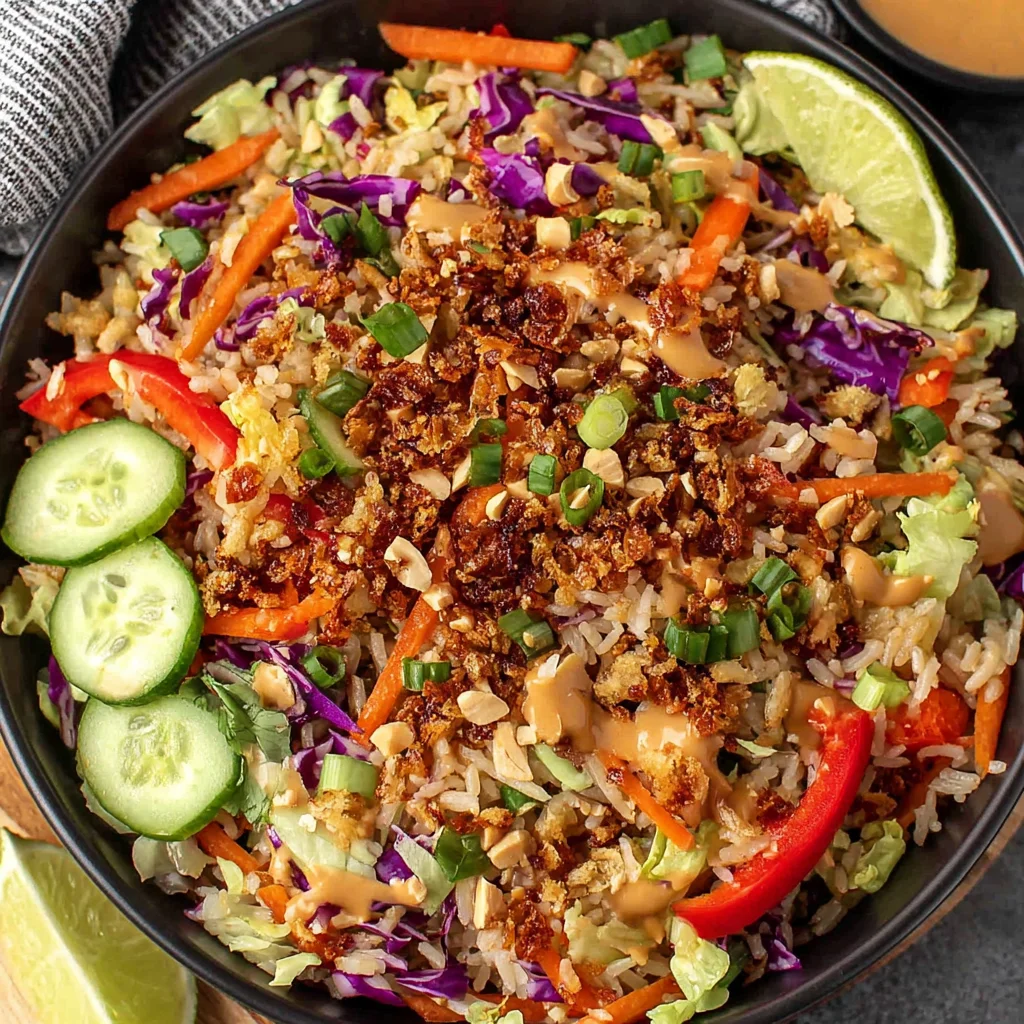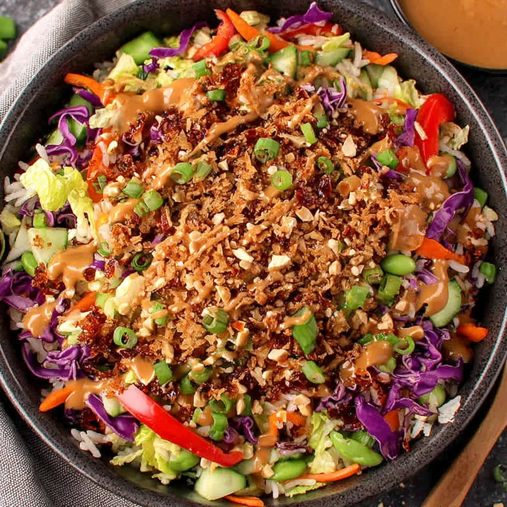 This vibrant and textural salad transforms humble day-old rice into an irresistible crispy sensation, perfectly complemented by a rich, savory peanut sesame dressing. Bursting with fresh vegetables and a delightful crunch, it's a dish that's both satisfyingly hearty and refreshingly light. An ideal meal for a quick weeknight dinner or an impressive potluck contribution.