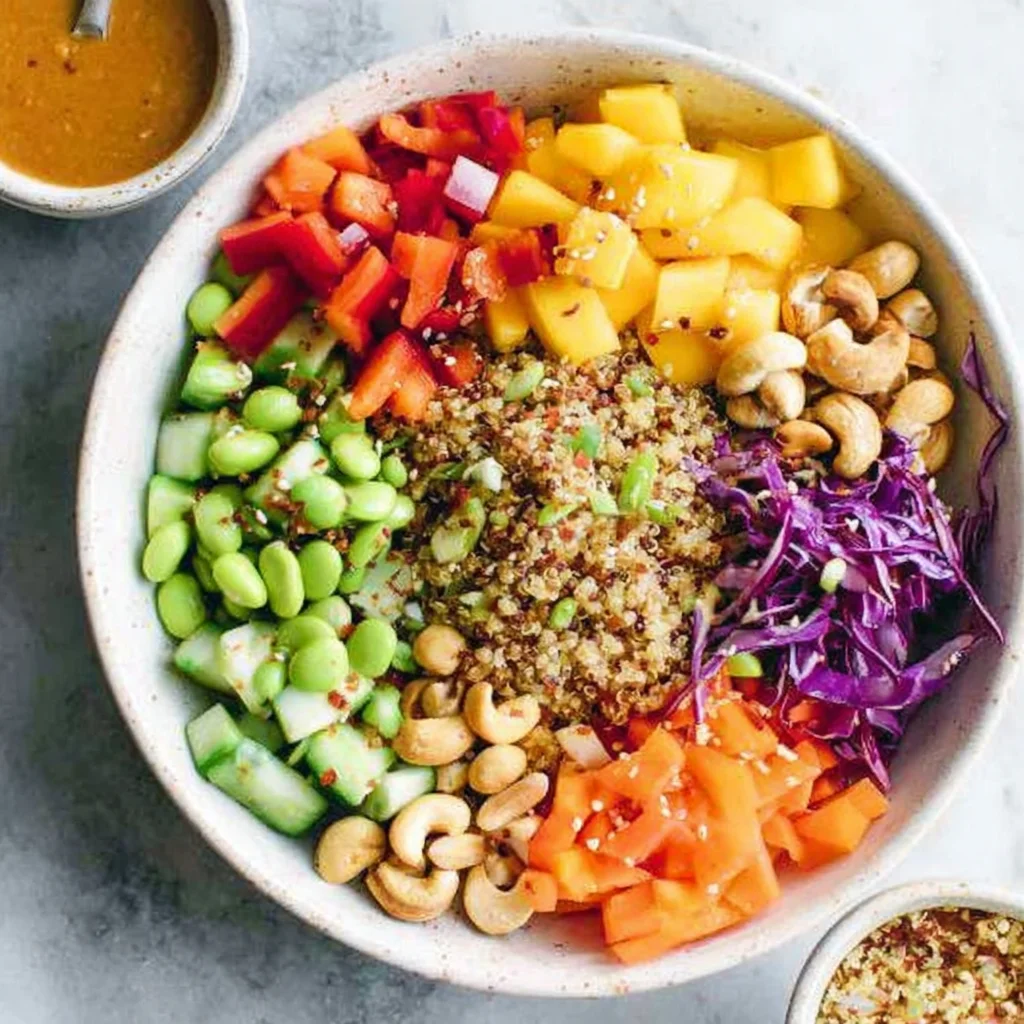 - A symphony of textures from fluffy quinoa to crisp vegetables and crunchy nuts.