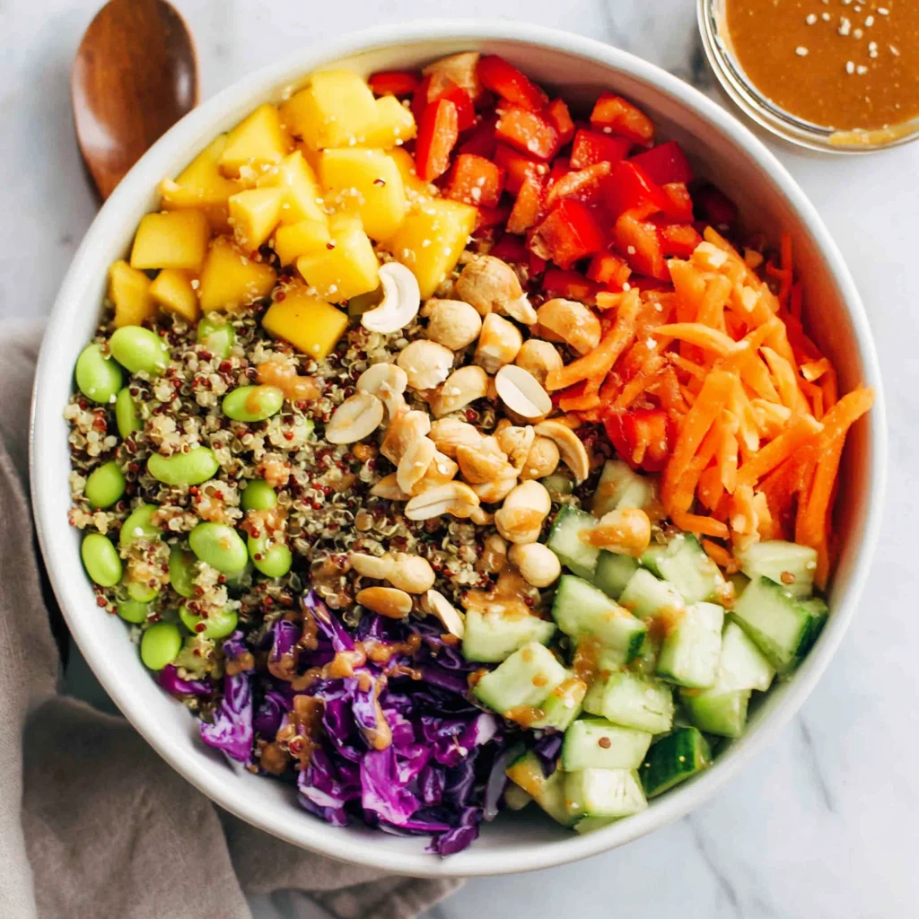 This vibrant Quinoa Crunch Salad is a feast for the senses, combining fluffy quinoa with a kaleidoscope of crisp vegetables and sweet, juicy mango. Each bite delivers a delightful textural symphony, heightened by a luscious, savory-sweet peanut dressing that ties all the fresh ingredients together. It's a satisfying, wholesome meal perfect for a light lunch, a vibrant side dish, or an impressive potluck contribution.