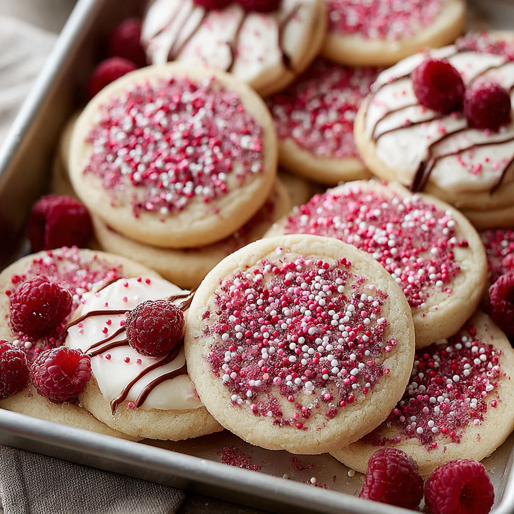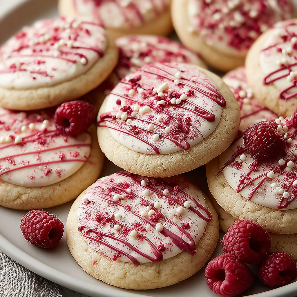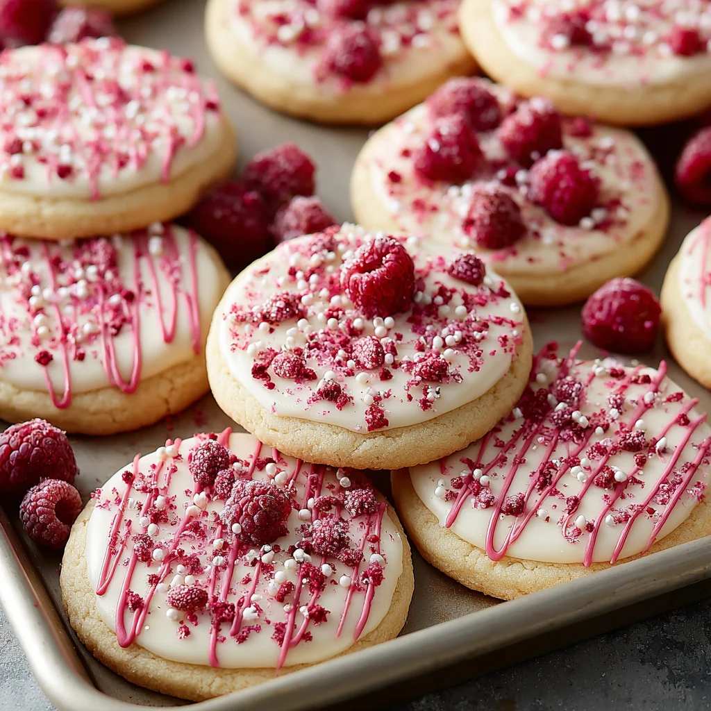Indulge in these delightful Raspberry Sugar Cookies, where the vibrant essence of real raspberries shines through every bite. With a soft, chewy texture and a beautiful balance of sweet and tangy notes, these cookies are elevated by a hint of cream cheese for an irresistibly tender crumb. An optional chocolate drizzle adds a touch of gourmet elegance, making them perfect for any occasion.