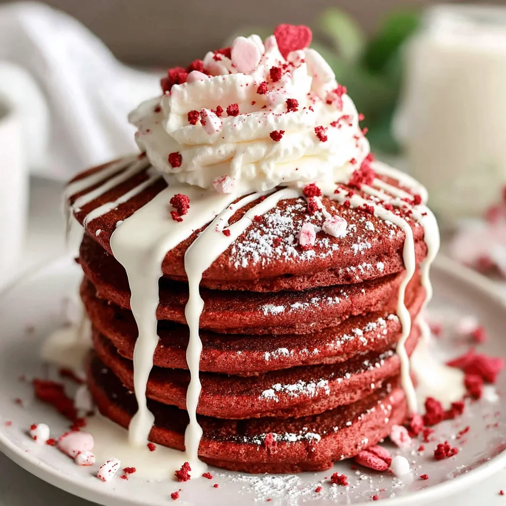 - Serve the warm Red Velvet Pancakes immediately, generously drizzled with the prepared cream cheese glaze. For an extra touch, garnish with fresh berries or a dusting of powdered sugar.