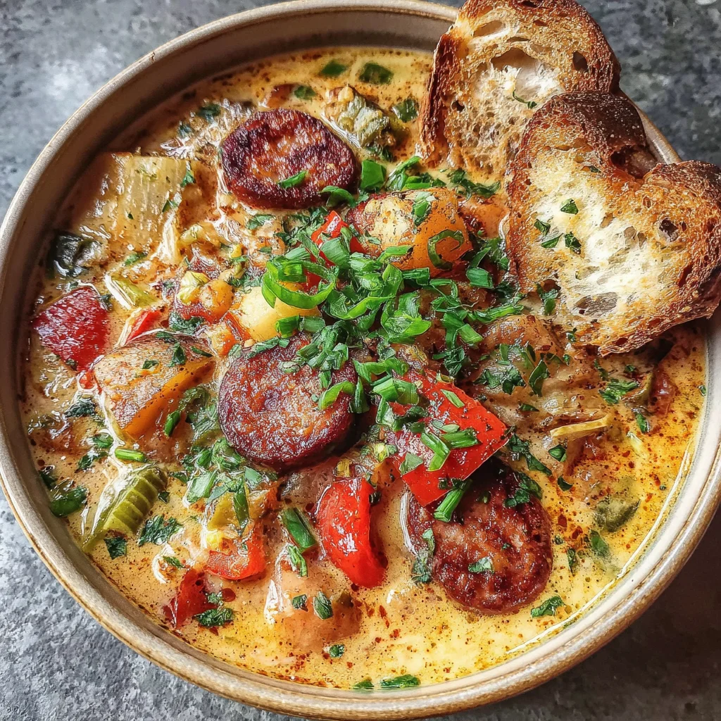 This soup offers a hearty embrace of Southern flavors, blending tender red potatoes, vibrant bell peppers, and spicy Cajun sausage in a rich, creamy broth. It's a comforting yet exciting dish that brings the lively spirit of Louisiana right to your kitchen table. Perfect for chilly evenings, this recipe is surprisingly simple to make while delivering complex, satisfying tastes.