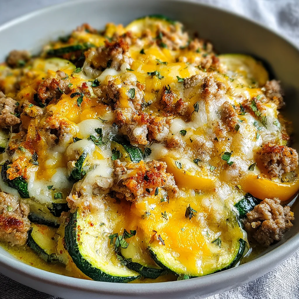 This comforting Savory Ground Turkey Zucchini Casserole is a delicious and wholesome meal perfect for any weeknight. Featuring lean ground turkey, tender zucchini, and a rich tomato base, all crowned with bubbling cheese, it's a dish that brings warmth and satisfaction to the dinner table. It's an excellent way to enjoy garden-fresh zucchini in a hearty, family-friendly format.