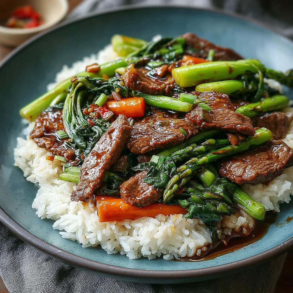 This vibrant stir-fry brings together tender beef, crisp bok choy, and fresh asparagus in a rich, savory soy-ginger sauce. It's an incredibly flavorful and balanced meal that comes together in under 20 minutes, perfect for busy weeknights without compromising on taste or nutrition. Enjoy a quick, restaurant-quality dish right in your own kitchen.
