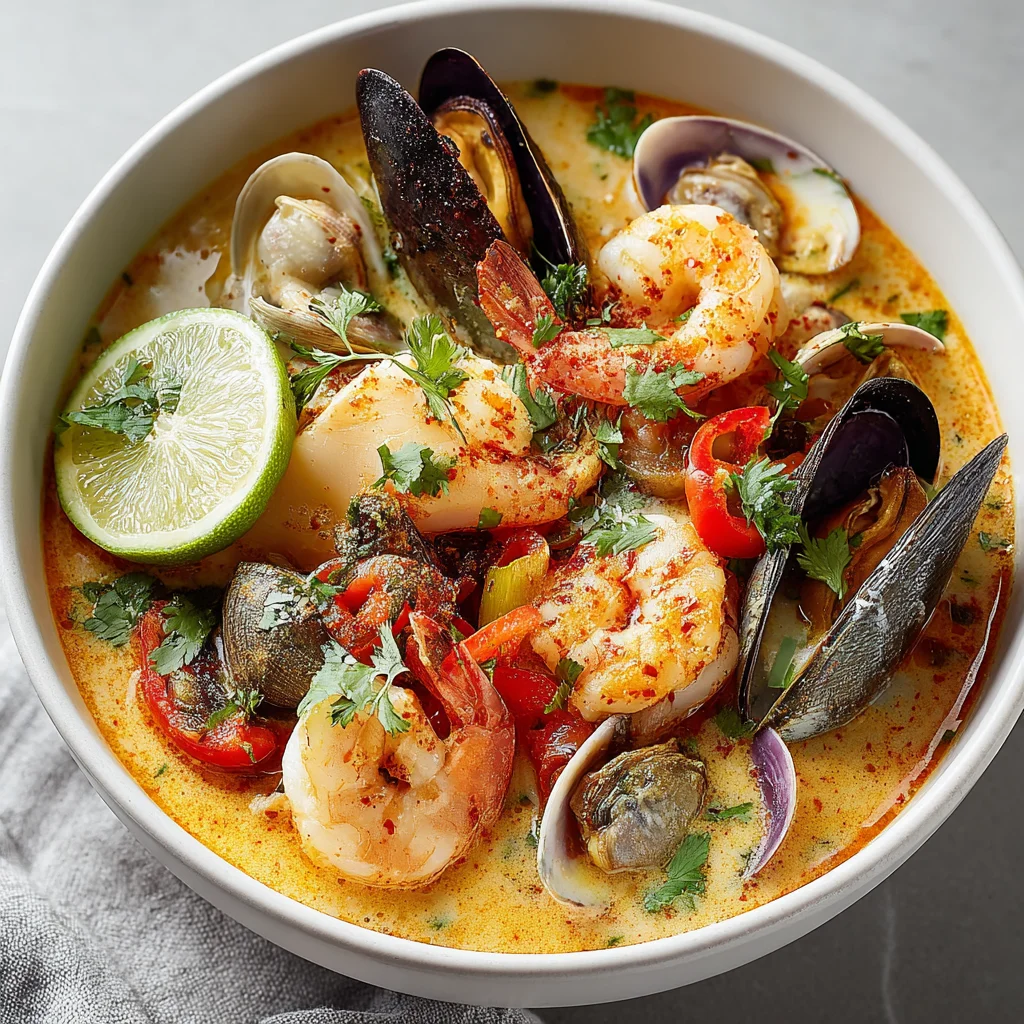 Transport your taste buds to the coast with this vibrant Seafood Stew, bursting with fresh ocean flavors. This comforting yet elegant dish features succulent shrimp and an assortment of mixed seafood bathed in a rich, aromatic broth crafted from fish stock and creamy coconut milk, brightened with a hint of lime. It's an incredibly satisfying meal that comes together quickly, perfect for a special weeknight dinner or entertaining guests.