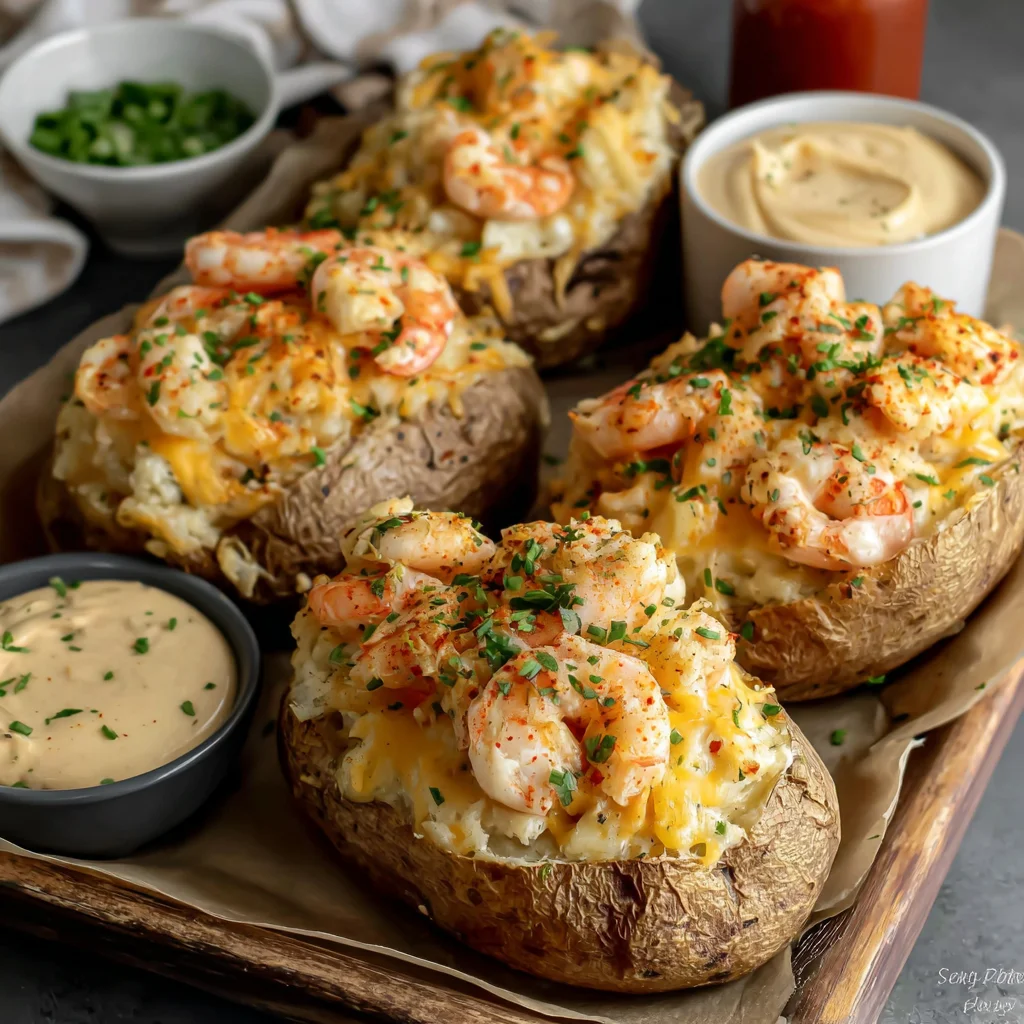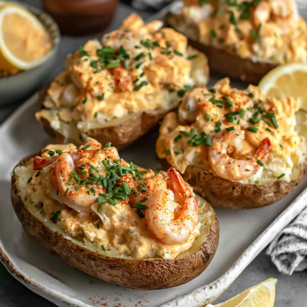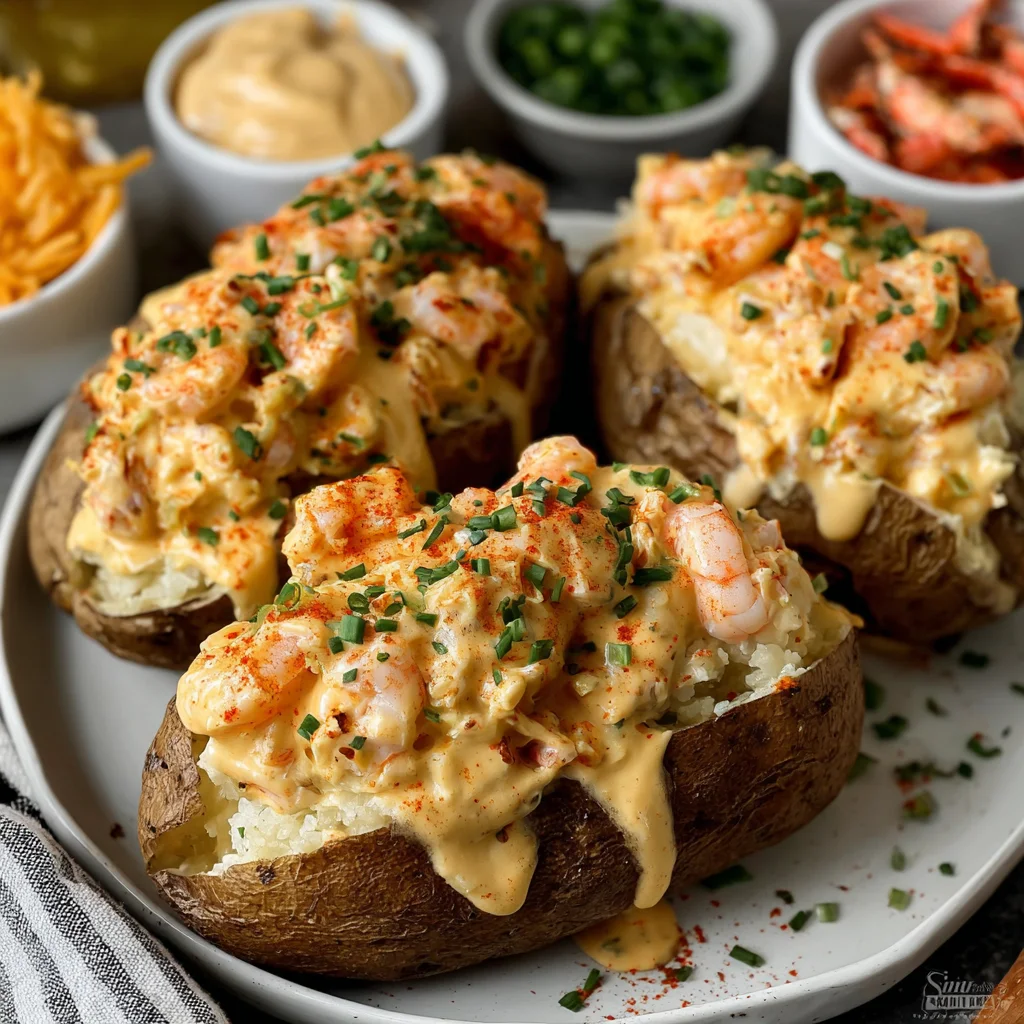 - A true showstopper, combining hearty baked potatoes with a luxurious, creamy seafood topping.