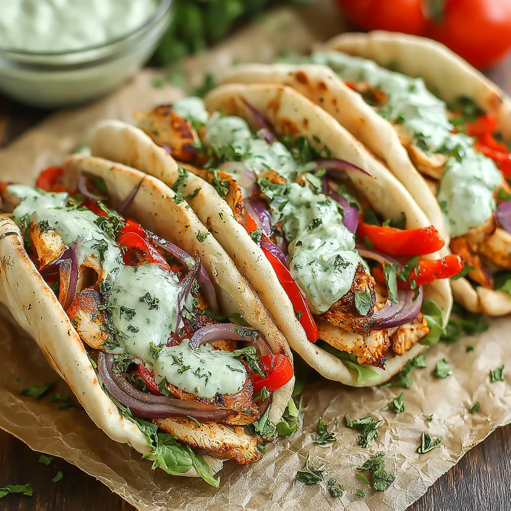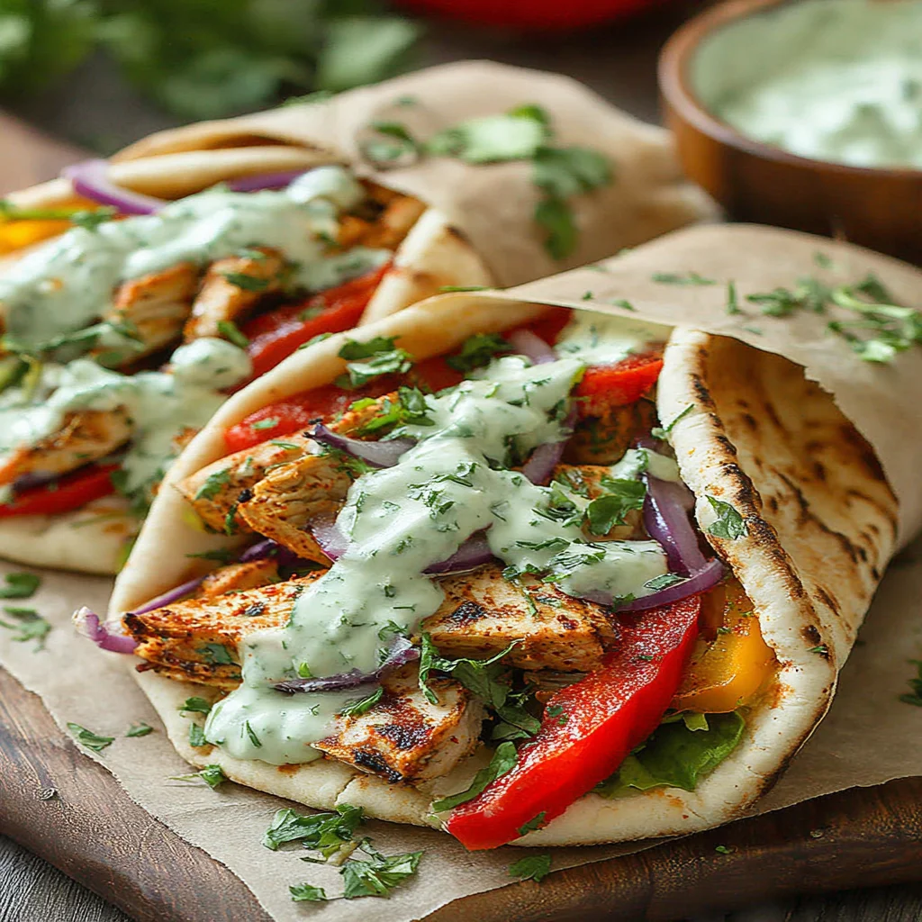 Contains dairy (mayonnaise, sour cream/yogurt, milk, optional feta cheese) and gluten (pitas). For a gluten-free version, use certified gluten-free pitas or serve the chicken and vegetables over a bed of rice or lettuce wraps. For a dairy-free version, see FAQ.