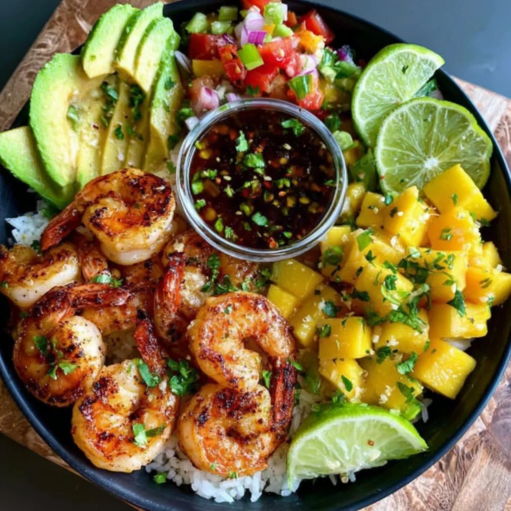 Experience a vibrant explosion of flavors with these Shrimp and Avocado Bowls, perfectly balanced with a sweet and tangy mango salsa and a zesty lime-chili sauce. This dish combines succulent, spice-rubbed shrimp with creamy avocado, fragrant rice, and a refreshing burst of tropical fruit, creating a wholesome and satisfying meal that’s both light and incredibly flavorful.