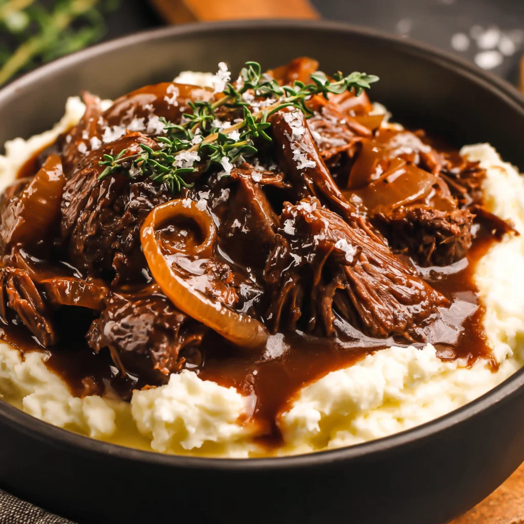 Experience the comforting embrace of a classic Slow Cooker Beef Manhattan, an iconic open-faced sandwich elevated by tender, slow-cooked beef and rich, savory gravy. This dish features succulent beef roast simmered to perfection with aromatic spices, transforming into a melt-in-your-mouth delight atop fluffy mashed potatoes and a slice of hearty bread. It's the ultimate homestyle meal, perfect for a cozy family dinner.