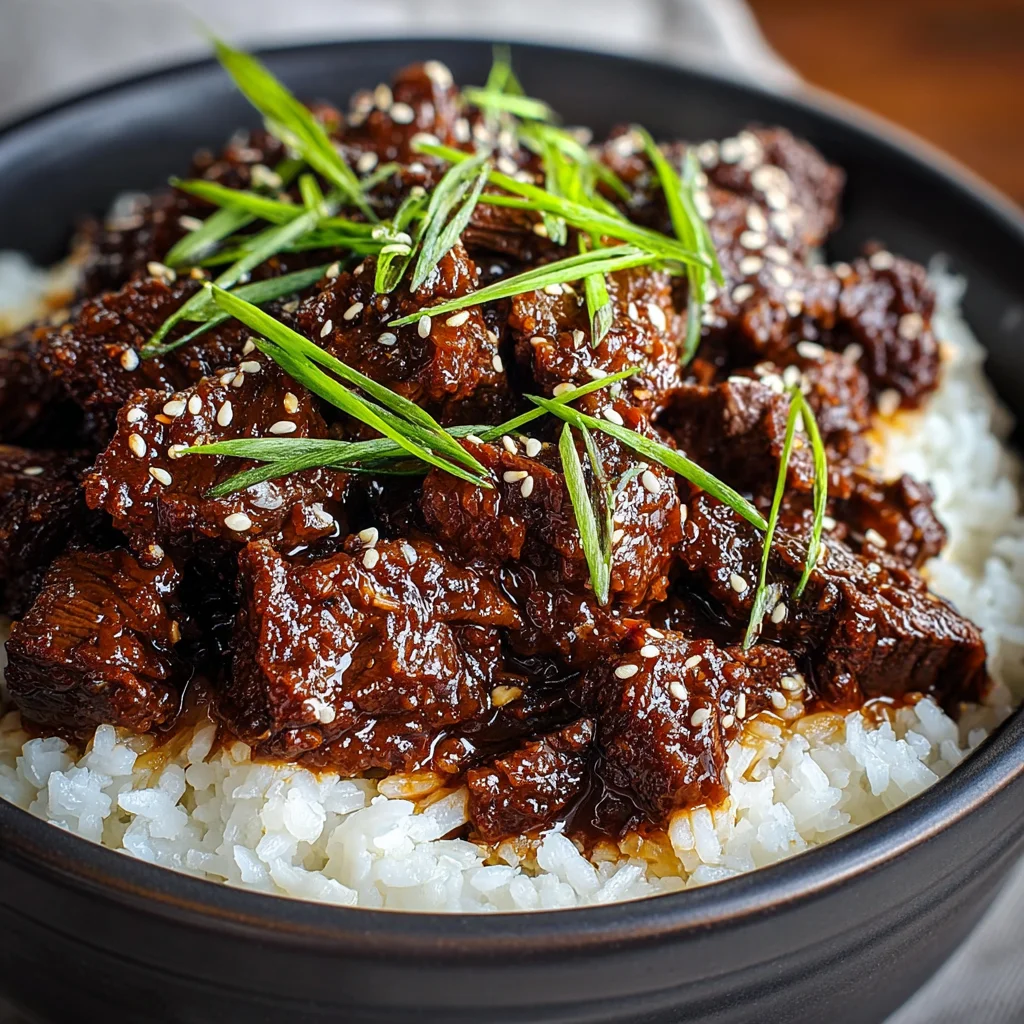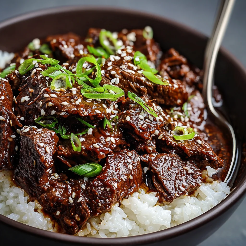 9. Serve the Slow Cooker Korean Beef piping hot. Garnish generously with thinly sliced green onions and a sprinkle of toasted sesame seeds. It pairs wonderfully with steamed jasmine rice or fresh lettuce wraps for a lighter option.