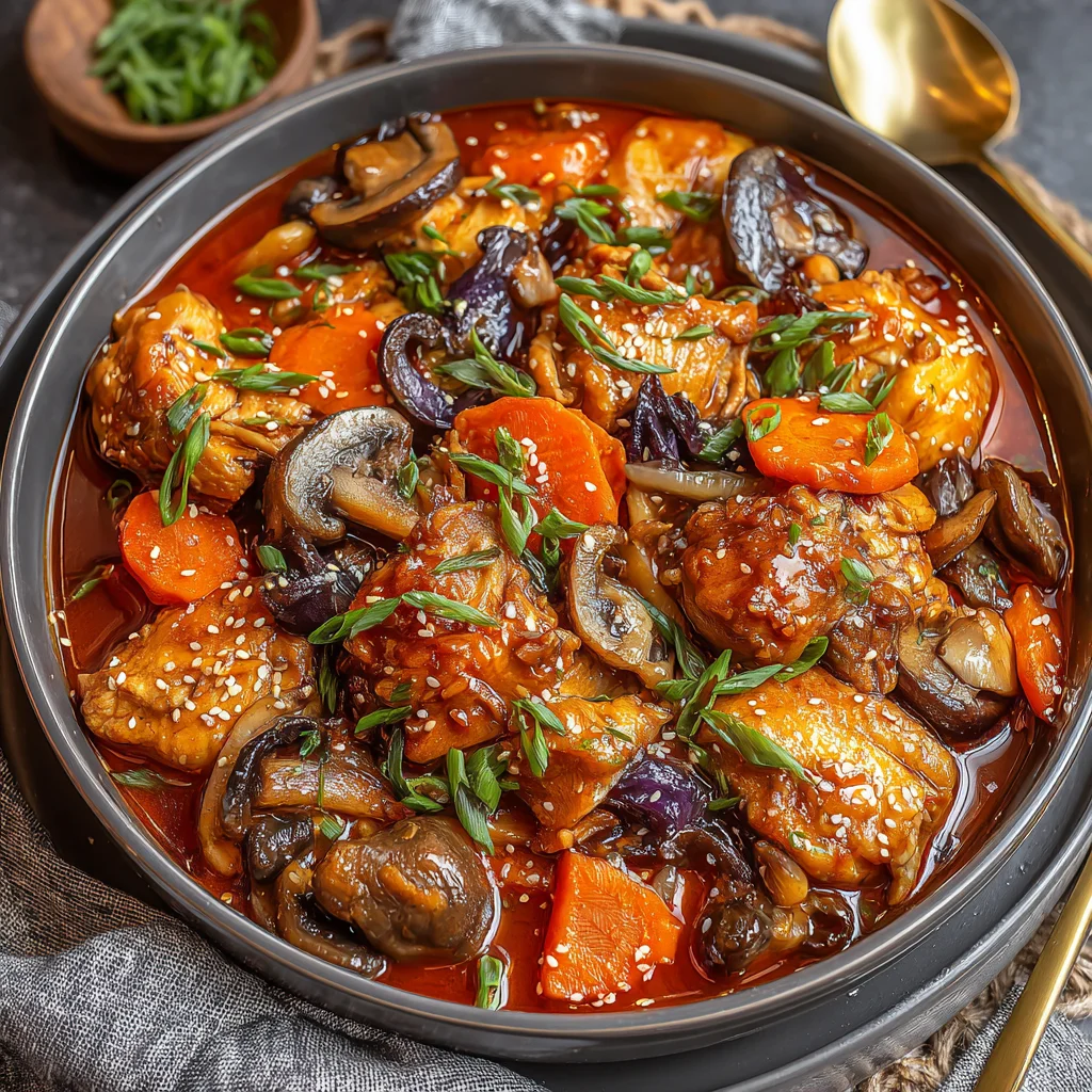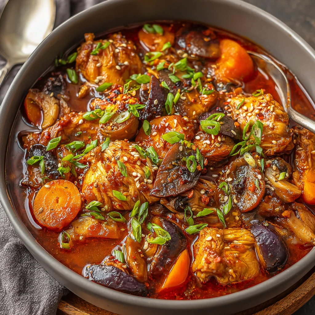 Indulge in the rich, comforting flavors of this Slow Cooker Korean Chicken Stew. Tender boneless chicken thighs and hearty vegetables simmer slowly in a deeply savory, slightly sweet, and subtly spicy gochujang-infused broth, creating a nourishing and incredibly satisfying meal with minimal effort. This dish promises a depth of flavor that tastes like it cooked all day, perfect for a cozy weeknight dinner.