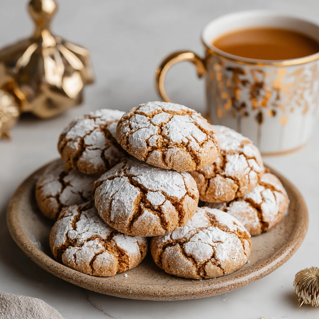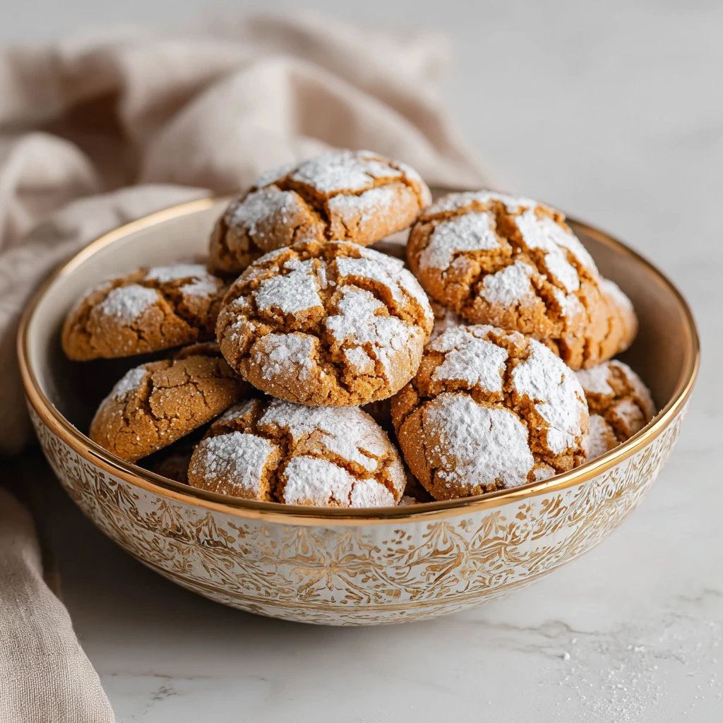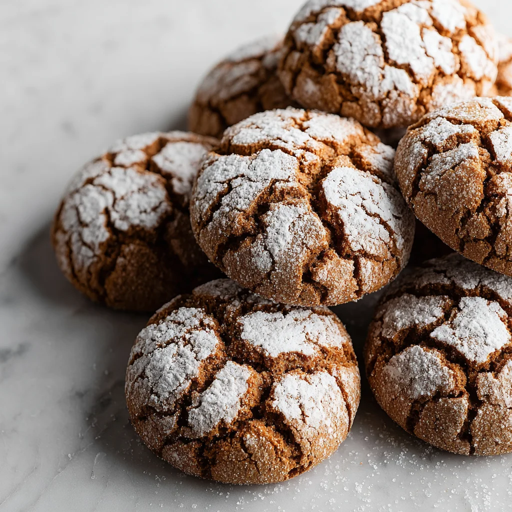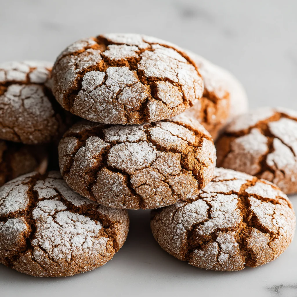 Experience the quintessential taste of the holidays with these irresistibly soft and spiced gingerbread crinkle cookies. Each bite offers a delightful warmth from ginger, cinnamon, cloves, and nutmeg, enveloped in a tender, chewy texture. The signature powdered sugar coating bakes into beautiful crinkles, making these festive treats as visually appealing as they are delicious, perfect for sharing or a cozy night in.