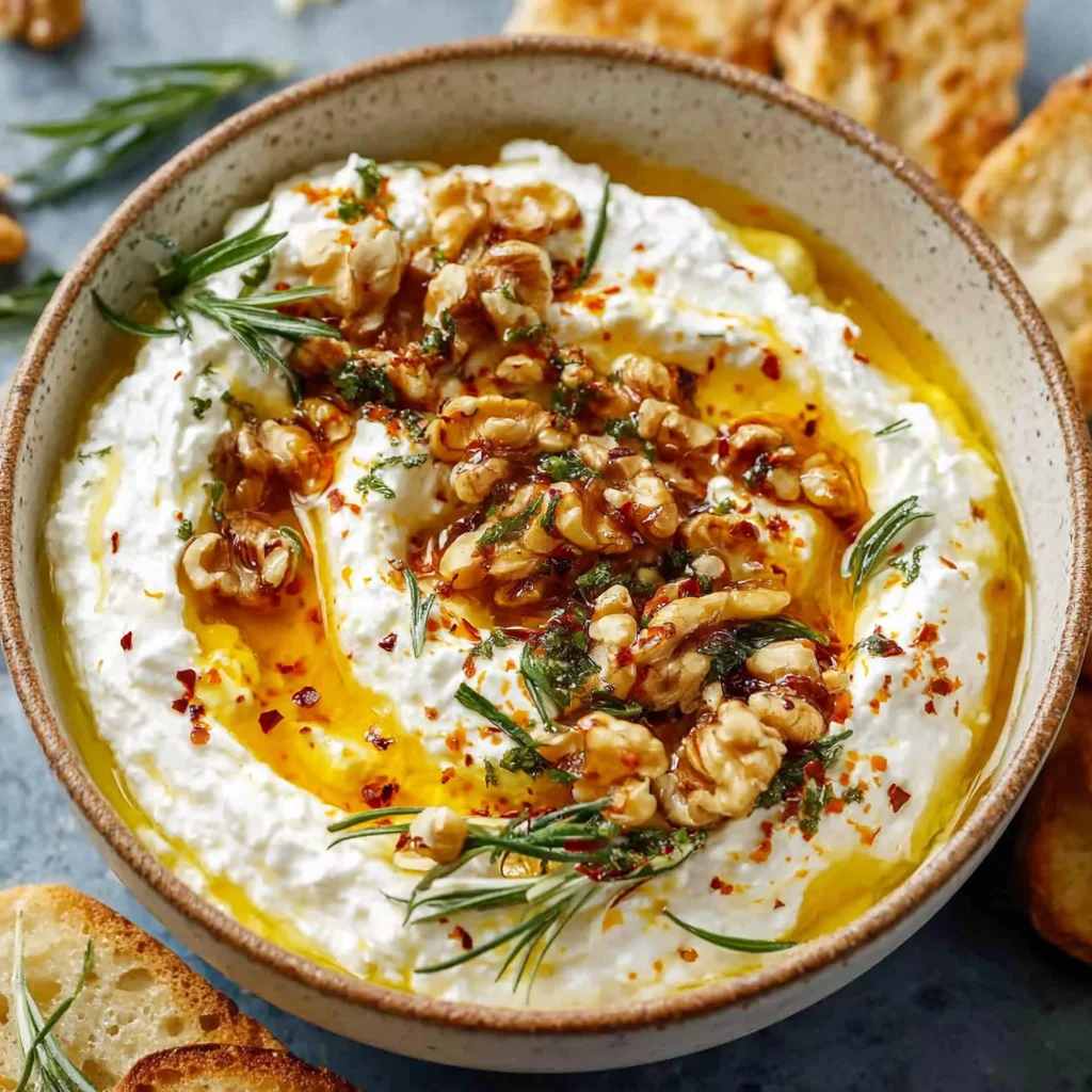Elevate your appetizer game with this effortlessly chic Spicy Ricotta Dip, a harmonious blend of creamy, sweet, and spicy flavors. Fresh, whipped whole milk ricotta forms a luscious base, beautifully complemented by a drizzle of fiery hot honey and a textural crunch of toasted walnuts and fragrant rosemary. Perfect for entertaining or a sophisticated snack, this dip comes together in mere minutes, promising a truly memorable culinary experience.