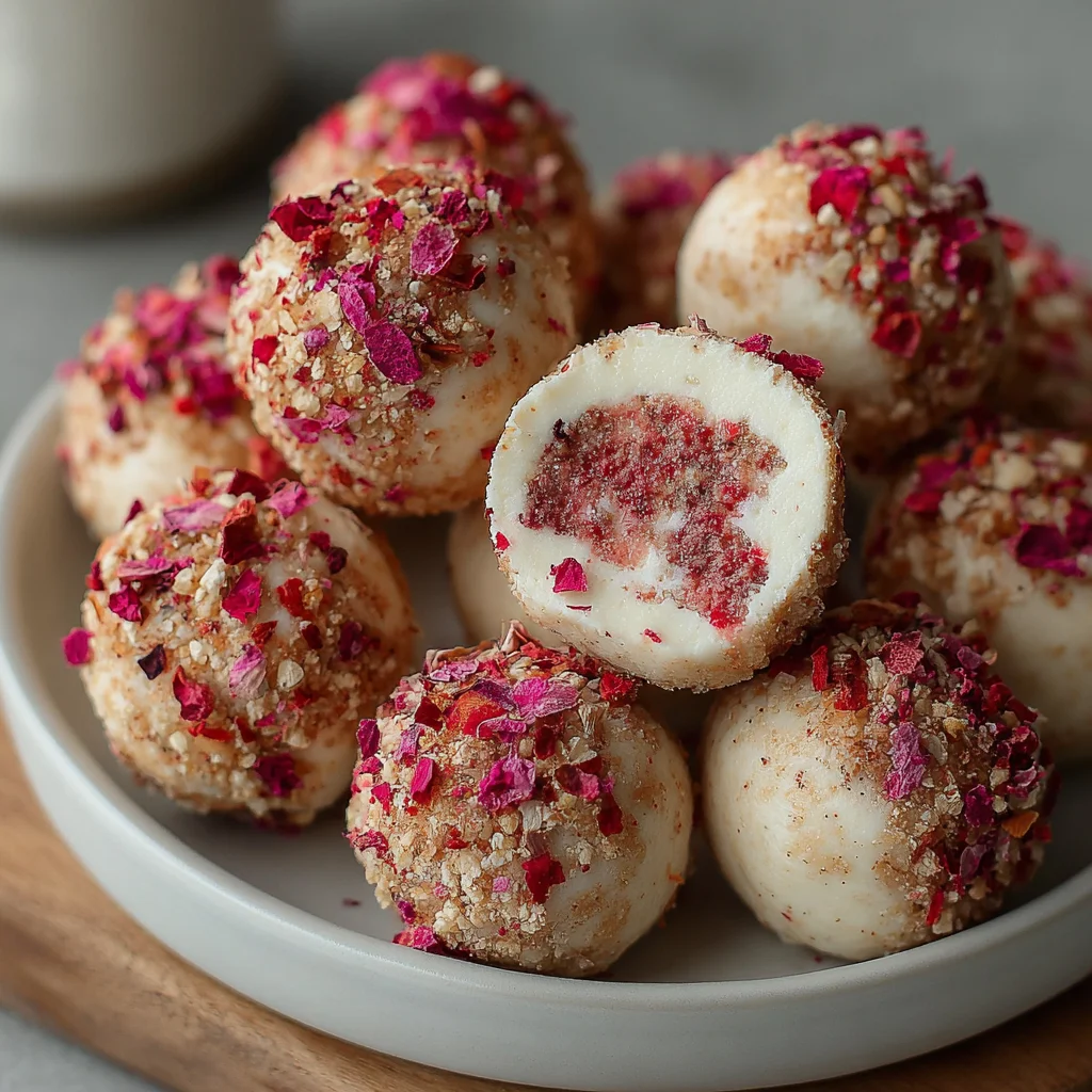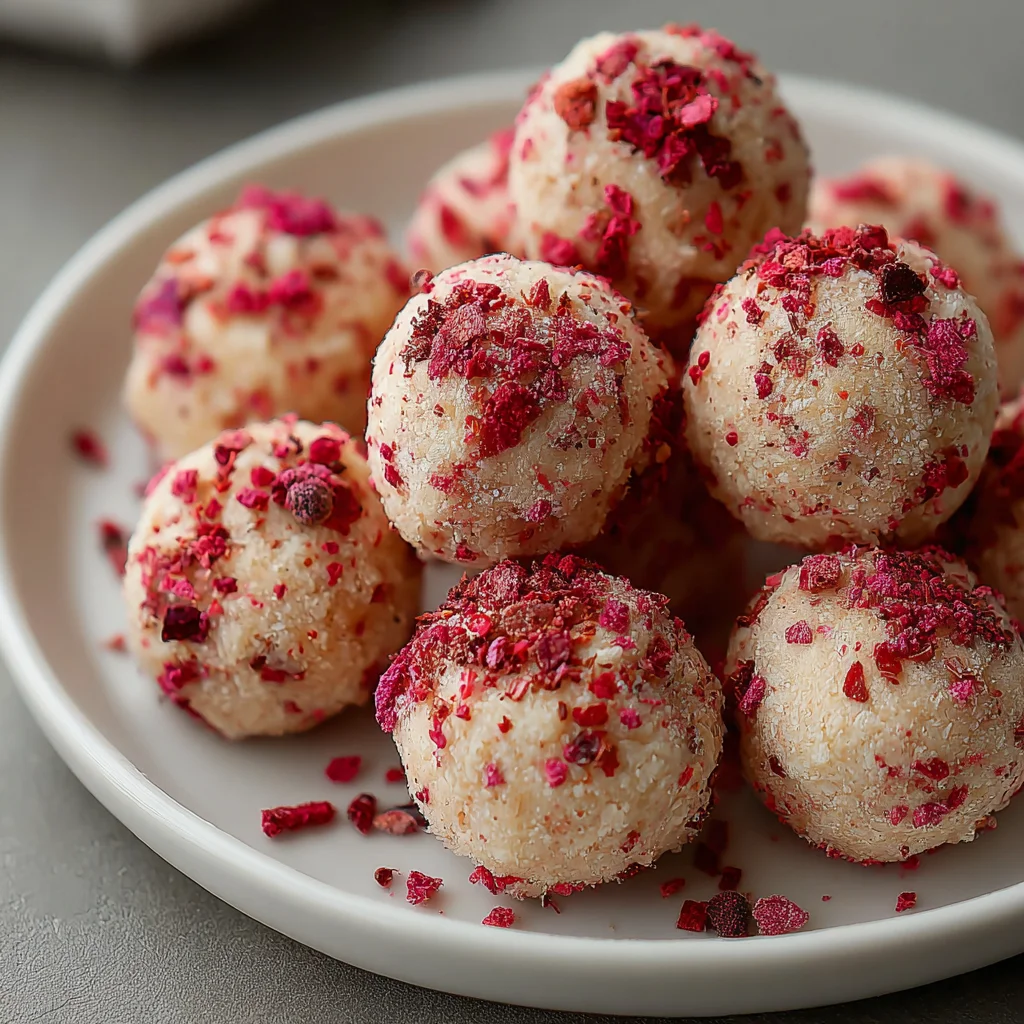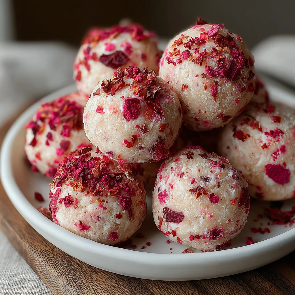 - Take each rolled protein ball and gently roll it in the reserved crushed freeze-dried strawberries. This creates an appealing, vibrant pink coating and adds an extra burst of strawberry flavor and texture.