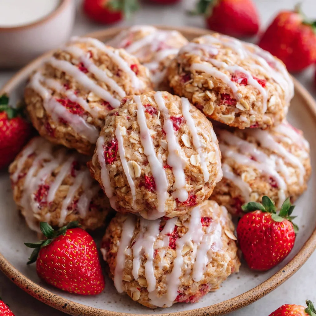 These Strawberry Iced Oatmeal Cookies are a delightful fusion of wholesome chewiness and vibrant fruit flavor, perfect for welcoming spring and summer. Each bite offers a satisfying texture from the rolled oats, complemented by an intense burst of real strawberry, all finished with a delicate, tangy-sweet glaze. They're a charming treat that brings sunshine to any occasion.