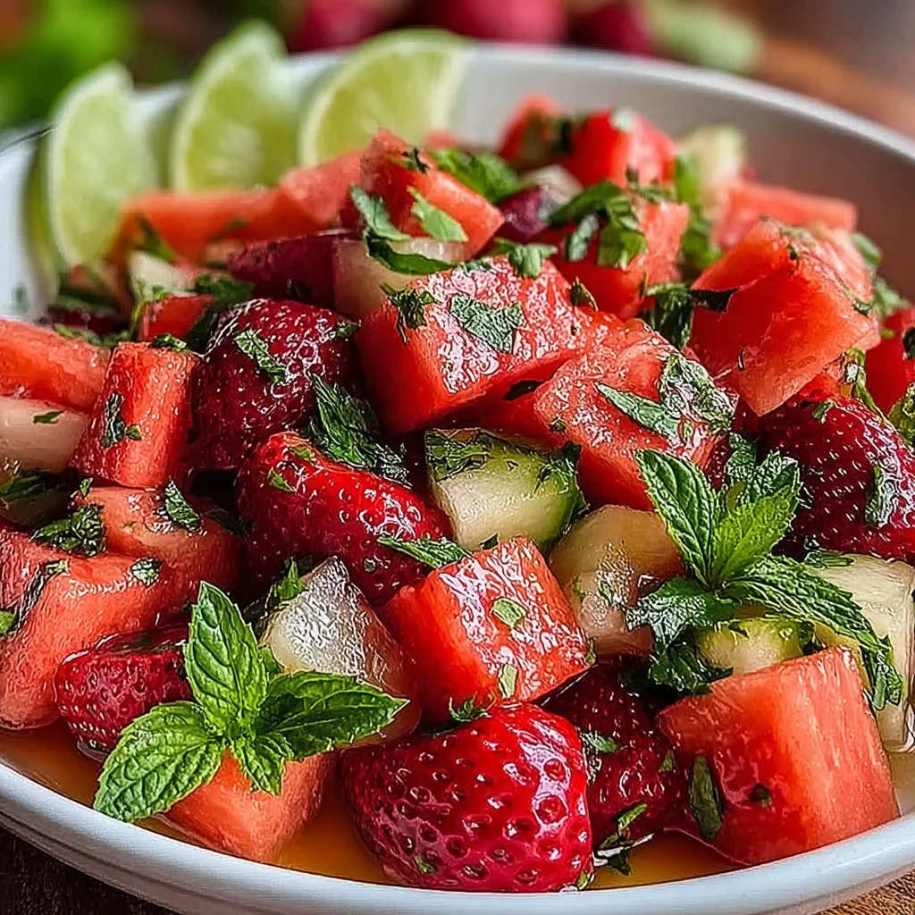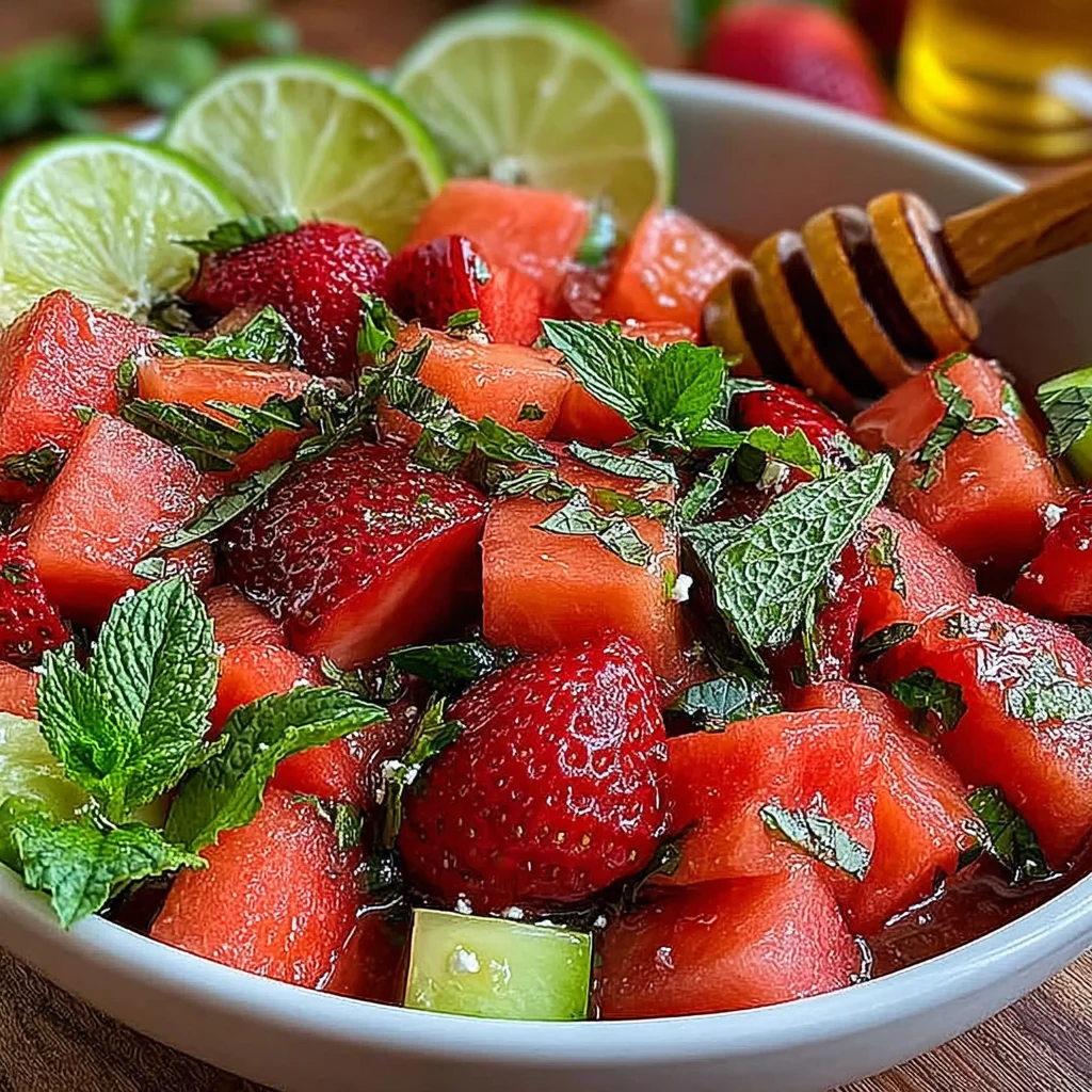 Strawberry Watermelon SaladSummer Fruit SaladHoney Lime DressingFresh Mint SaladRefreshing DessertEasy Fruit RecipeHealthy SaladVegan Fruit SaladQuick Summer DishPicnic Salad
