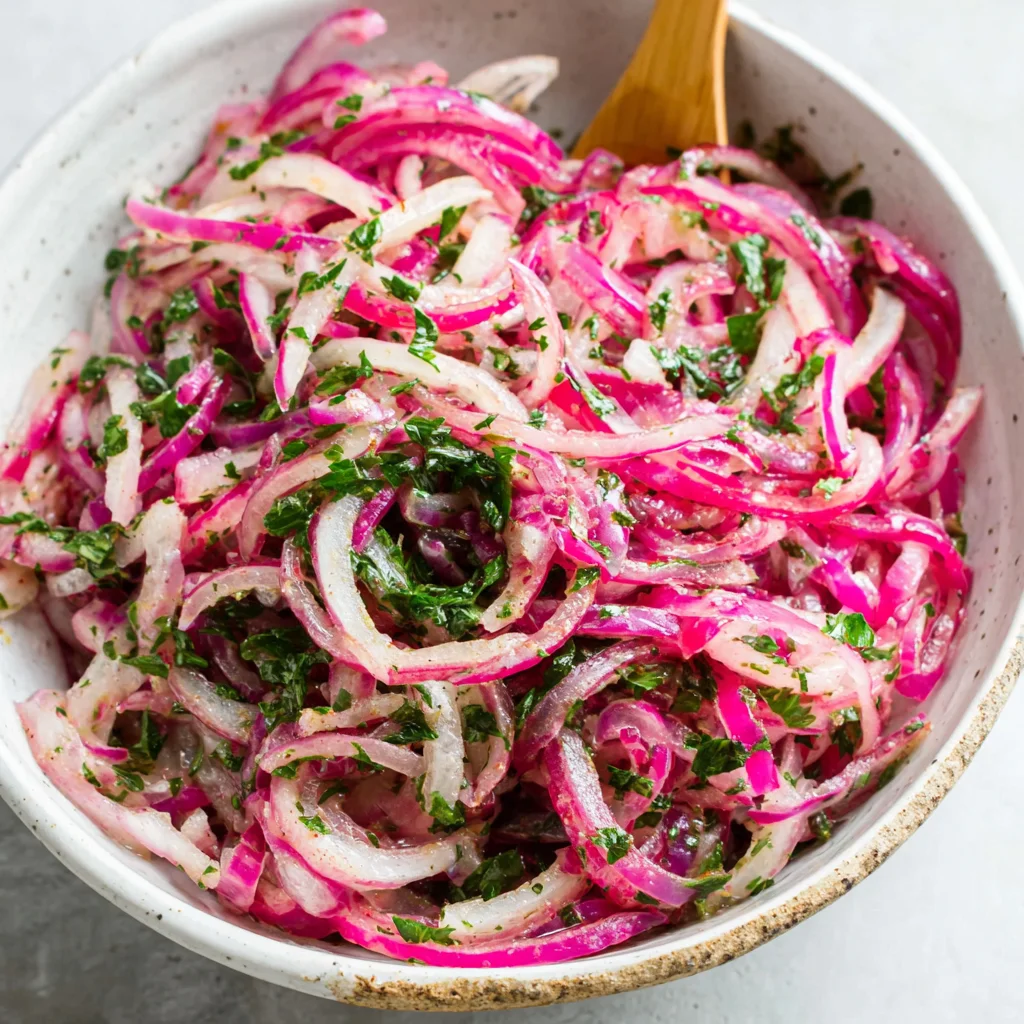 Bright, tangy, and incredibly versatile, Sumac Onions are a staple in Turkish cuisine, offering a vibrant burst of flavor to any meal. This simple yet profound salad combines thinly sliced red onions with the unique citrusy notes of sumac, a touch of salt, rich olive oil, and fresh parsley. It's an essential condiment that elevates everything from grilled meats to sandwiches with its refreshing zest and beautiful color.