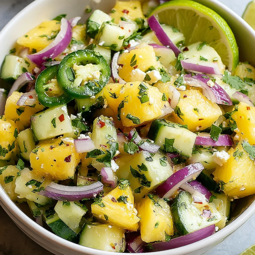 Sweet pineapple saladcucumber saladrefreshing saladsummer saladhealthy saladlime dressingvegetarian saladquick saladeasy recipefruit and vegetable salad