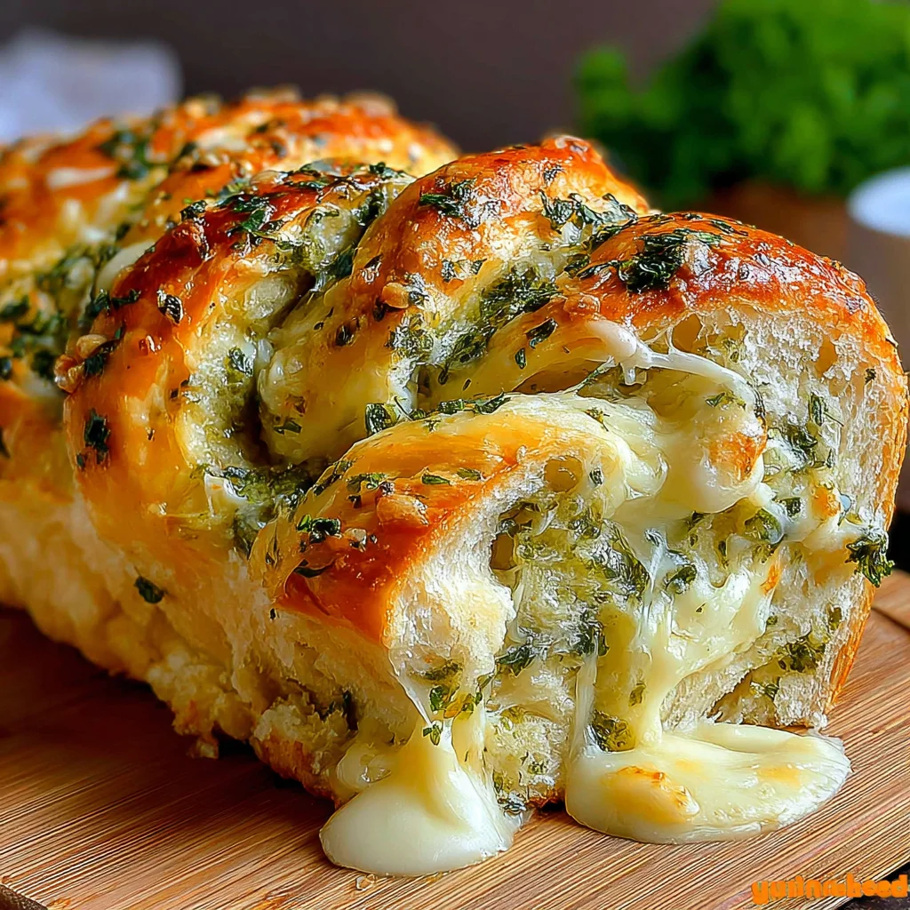 Indulge in the irresistible aroma and flavor of this Swirled Garlic Herb and Cheese Bread. Layers of soft, pillowy dough are generously filled with a vibrant blend of fresh garlic, aromatic herbs, and two kinds of melted cheese, all swirled into a visually stunning loaf. This bread is a perfect accompaniment to any meal or a delightful appetizer on its own.