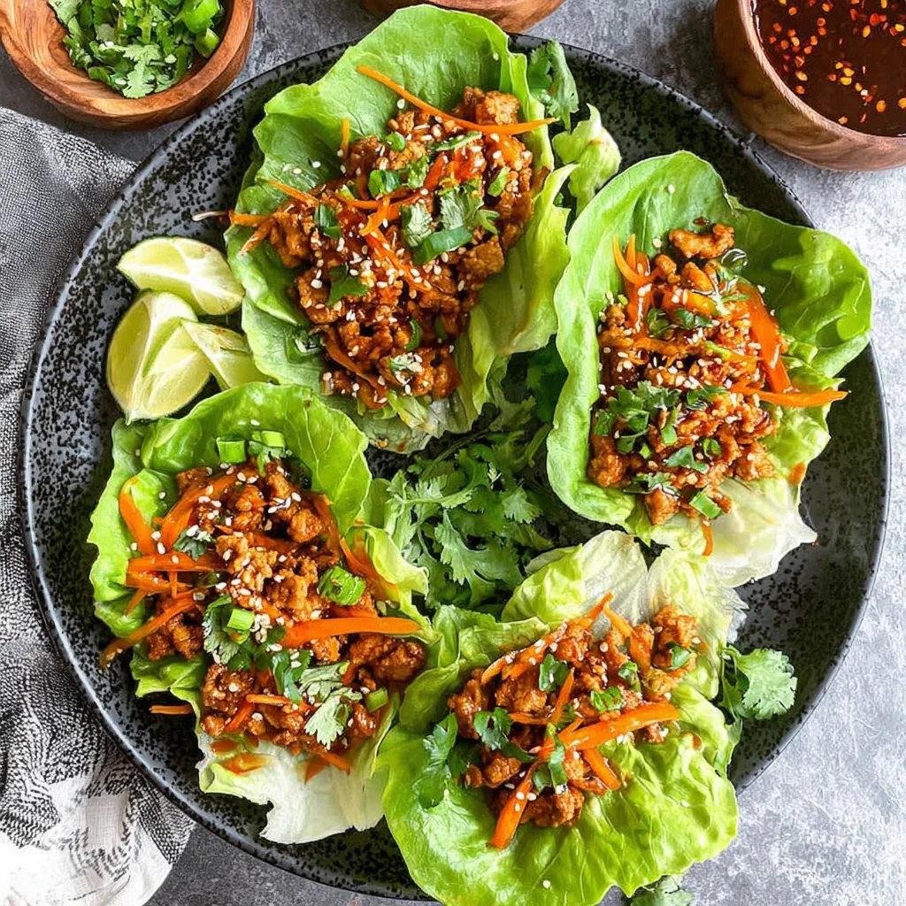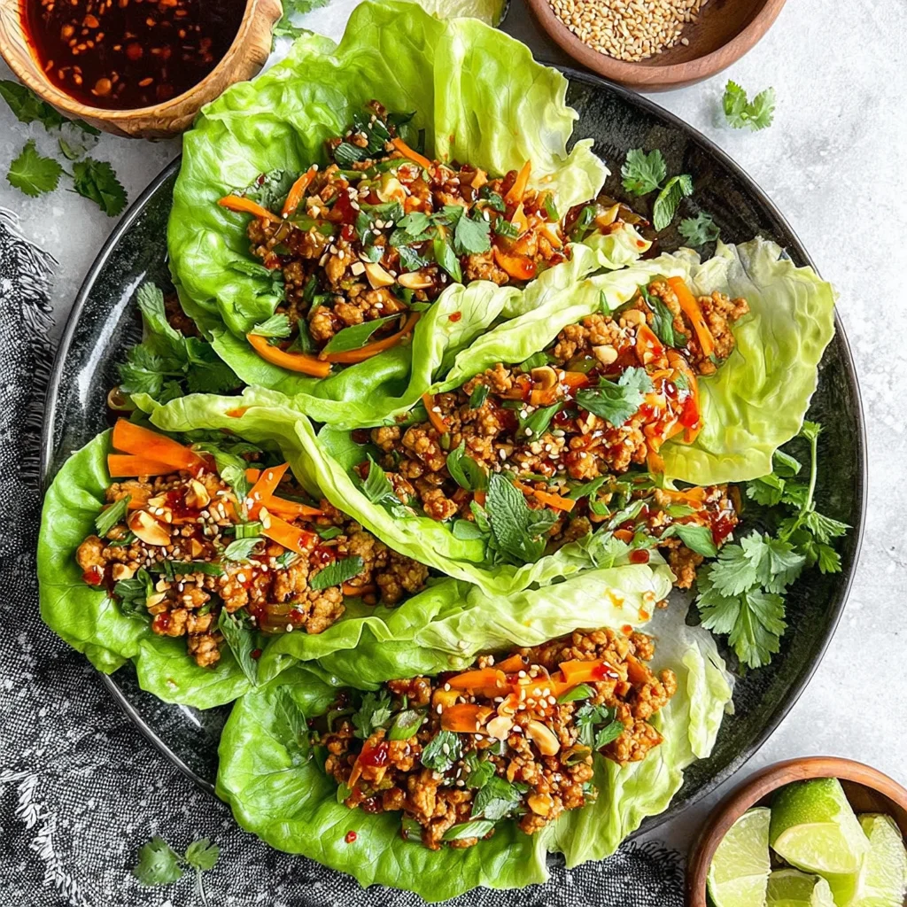 Discover a vibrant explosion of flavor with these incredibly fresh Thai Chicken Lettuce Wraps. Lean ground chicken is sautéed with aromatic ginger and garlic, then tossed in a delectable sweet and savory sauce featuring lime, chili, and tamari. Served in crisp butter lettuce cups, this dish delivers a perfect balance of textures and tastes, making it an ideal choice for a quick, healthy, and satisfying meal.