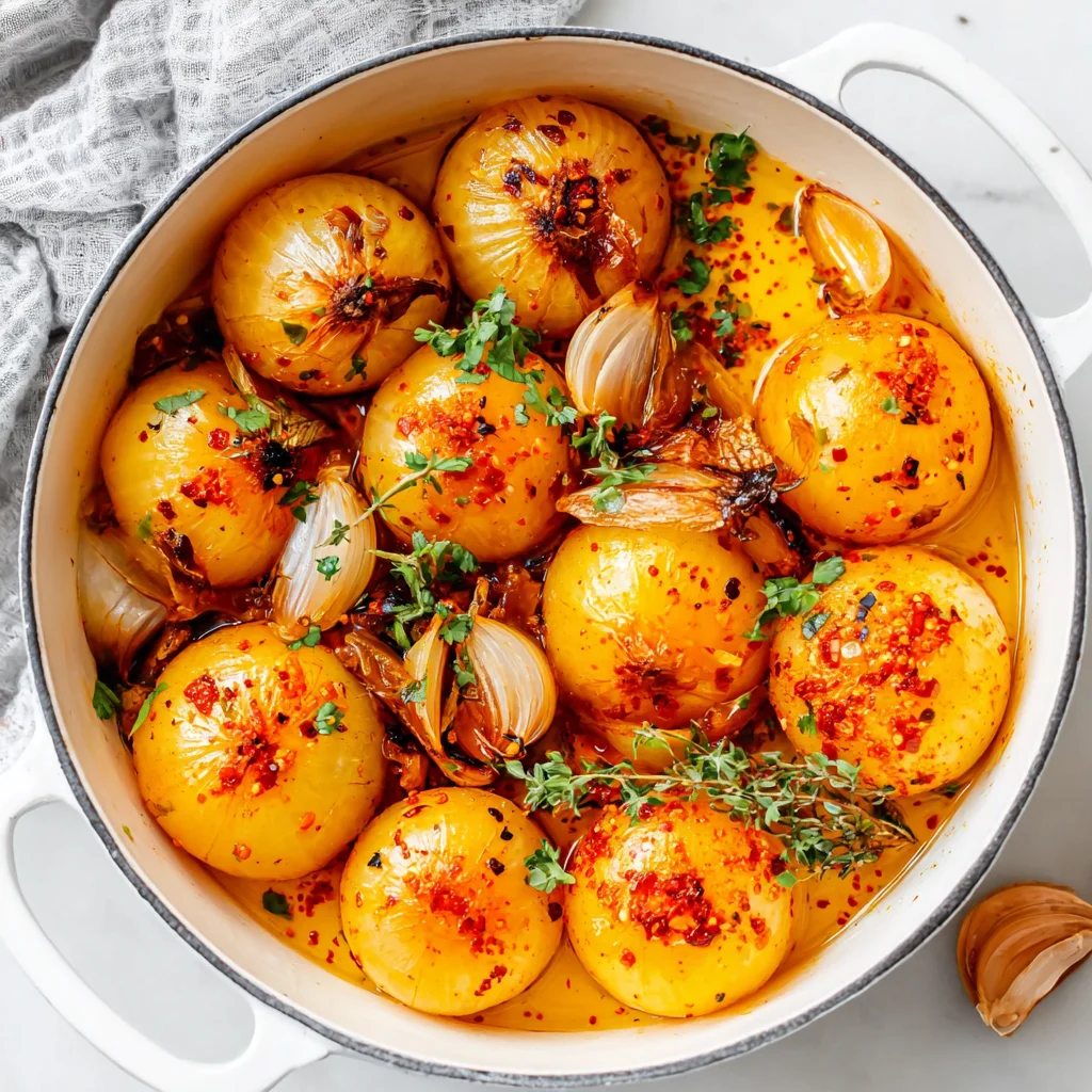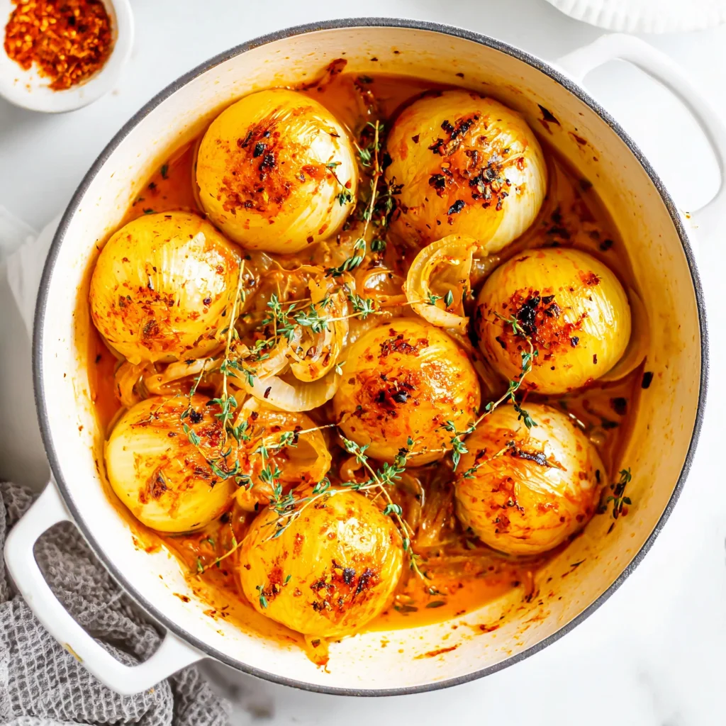 - Carefully remove the pot from the heat. Finish the dish with a pinch of freshly ground black pepper to enhance the overall flavor profile. Serve the onions immediately, making sure to generously spoon the luxurious, reduced sauce over each one. For an added touch of freshness and visual appeal, garnish with freshly chopped parsley or chives, if desired.