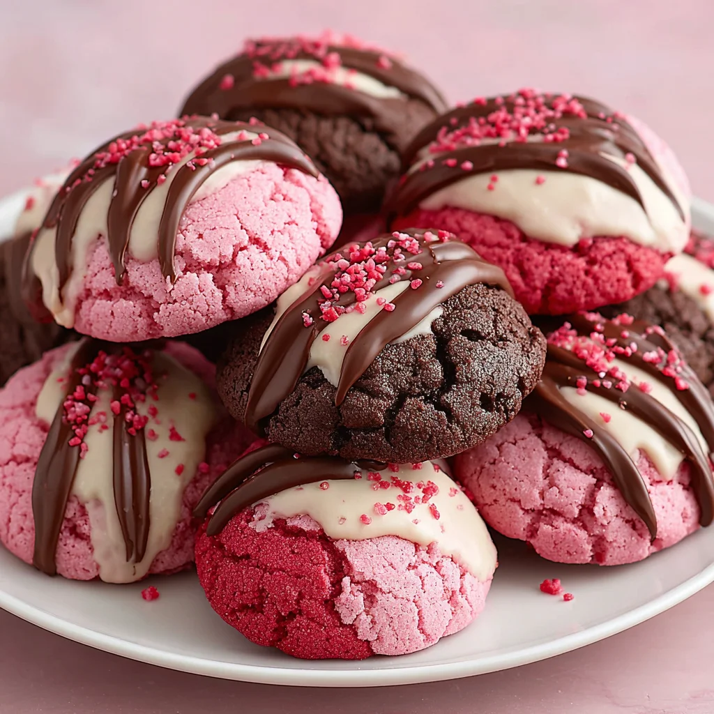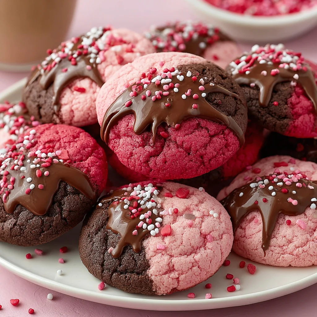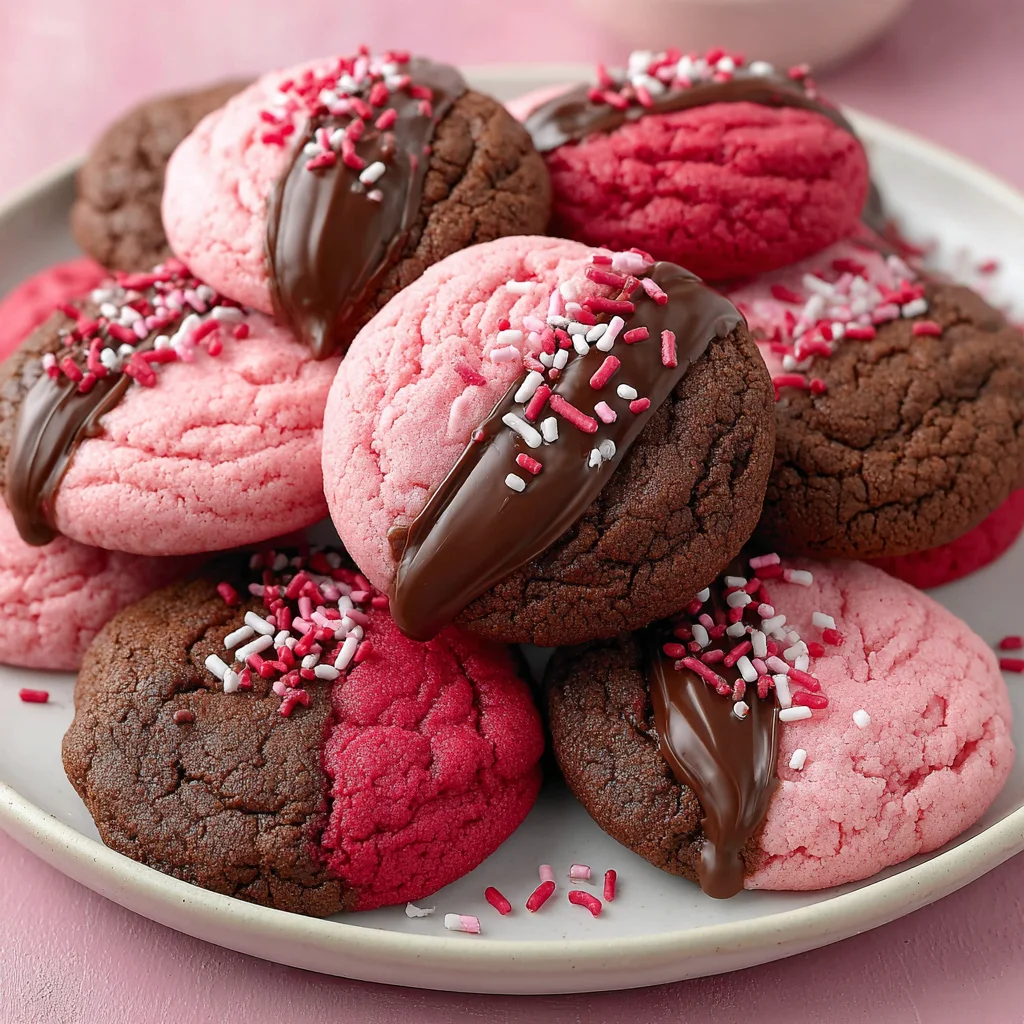 These exquisite Valentine Ganache Chocolate Cookies are a symphony of rich, fudgy chocolate and delicate pink raspberry cookie dough, embracing a decadent, smooth ganache filling. Perfect for expressing affection, each bite offers a delightful contrast in textures and flavors, crowned with romantic sprinkles and fruit. They are a truly special treat designed to melt hearts.
