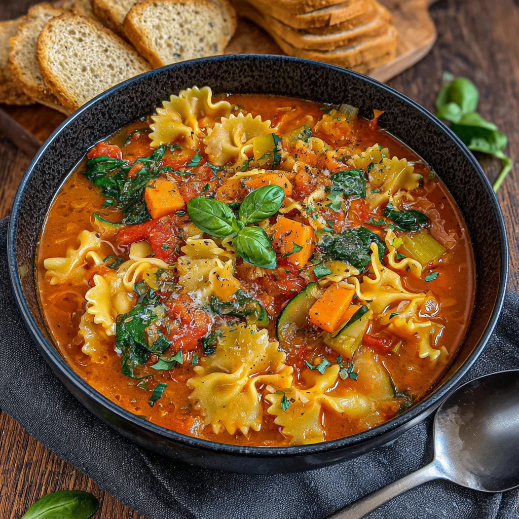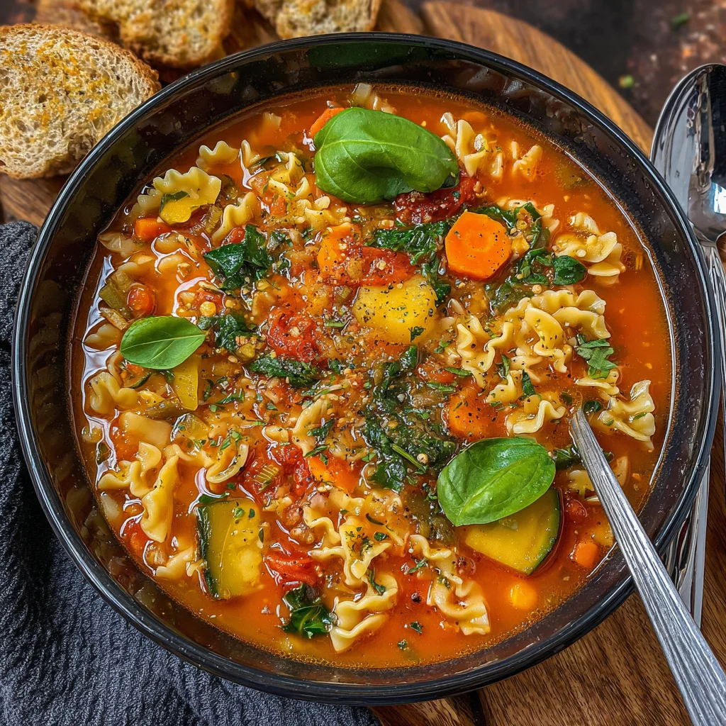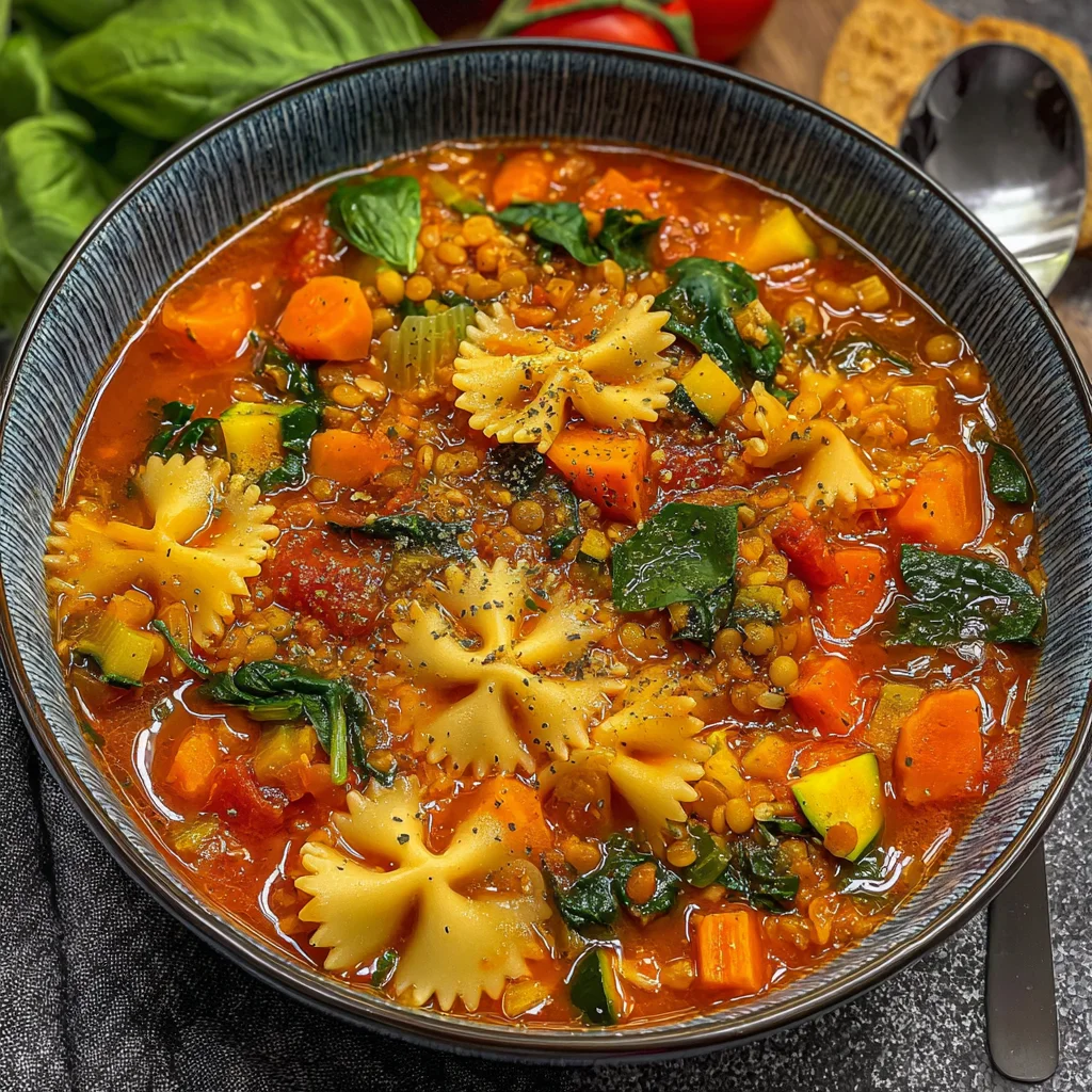 Experience all the comforting flavors of a classic lasagna in a warm, inviting bowl of soup. This hearty vegan version is packed with tender vegetables, protein-rich lentils, and al dente pasta, creating a satisfying meal that's both easy to prepare and incredibly delicious. It's the perfect dish for a cozy evening, offering rich tomato goodness without the fuss of layering.