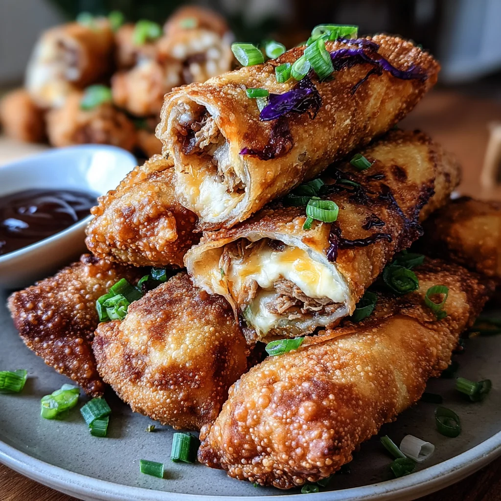 Voodoo egg rollspulled pork egg rollscheesy egg rollsfried appetizersgame day foodparty snackscomfort foodeasy fried snacksBBQ egg rollsSouthern fusion cuisine