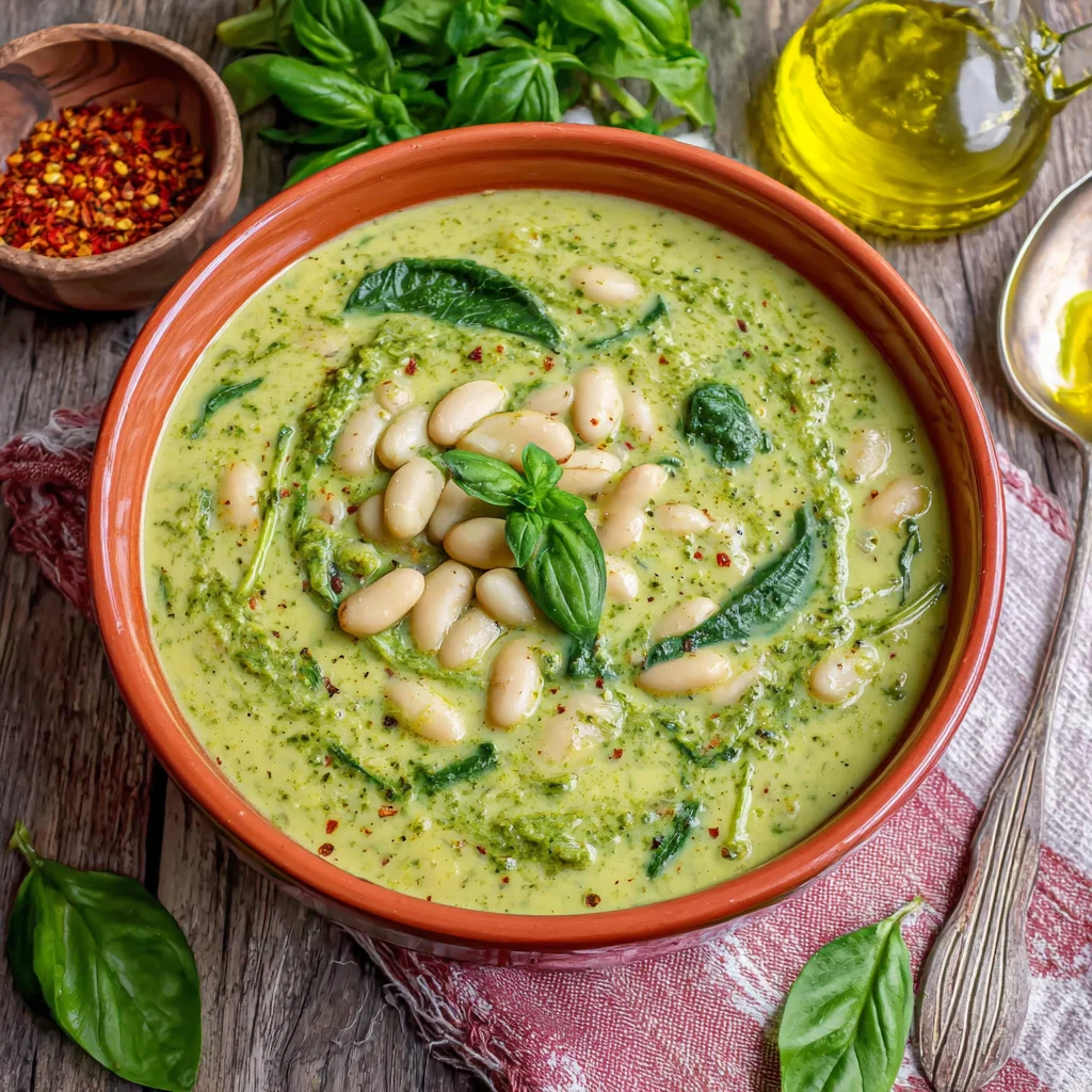 This White Bean Pesto Soup is a celebration of fresh, vibrant flavors in a comforting bowl. Hearty cannellini beans simmer in a rich vegetable broth, infused with a homemade basil and parsley pesto, creating a wonderfully aromatic and satisfying meal. It's a quick, healthy, and incredibly flavorful dish perfect for any day of the week.