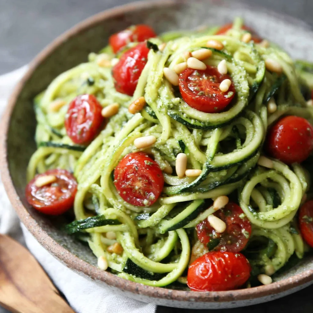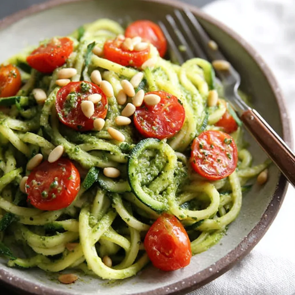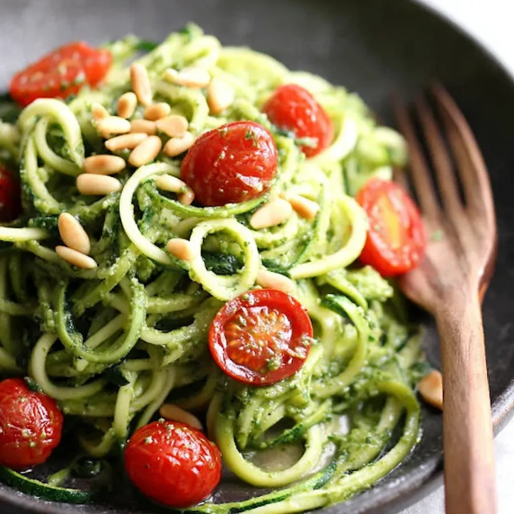 Zucchini noodleszucchini pestodairy-free pestolow carb pastahealthy dinnerquick mealvegetariangluten-freehealthy pasta alternativesummer recipe